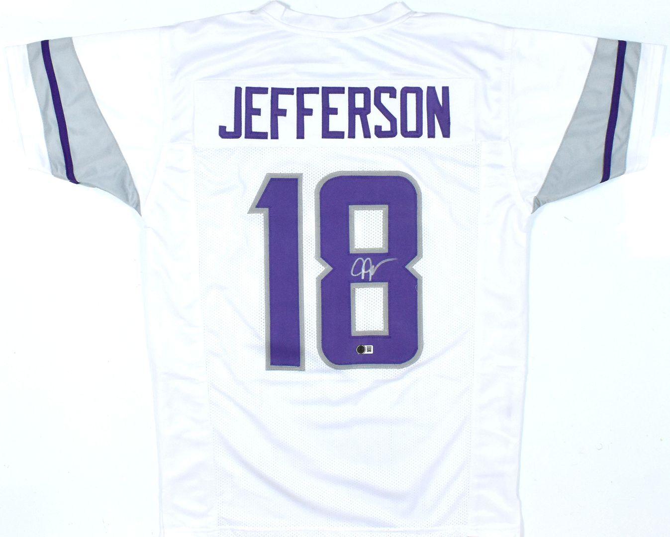 Custom jersey with everything sewn on, size XL. Hand-signed by Justin Jefferson.