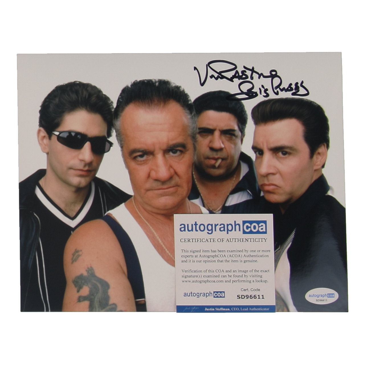 Photo measures 8" x 10" in size and has been hand-signed and inscribed by Vincent Pastore.