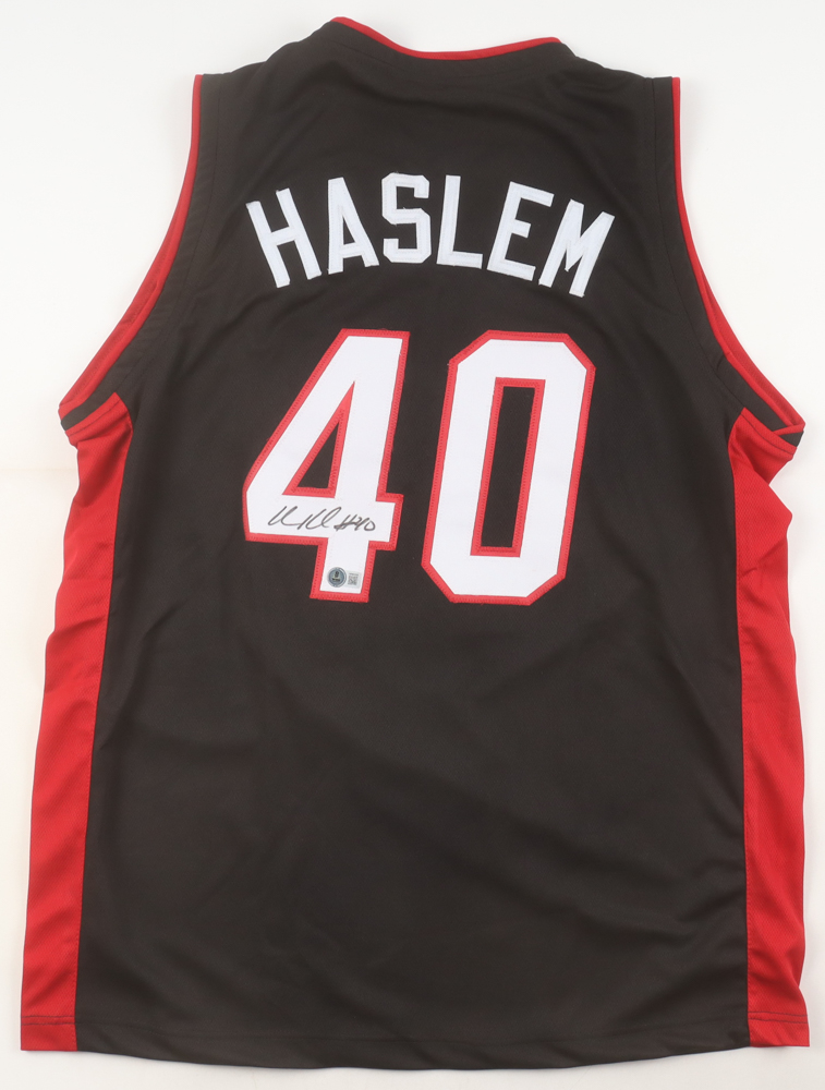 Custom jersey with everything sewn on, size XL. Hand-signed by Udonis Haslem (Miami Heat).