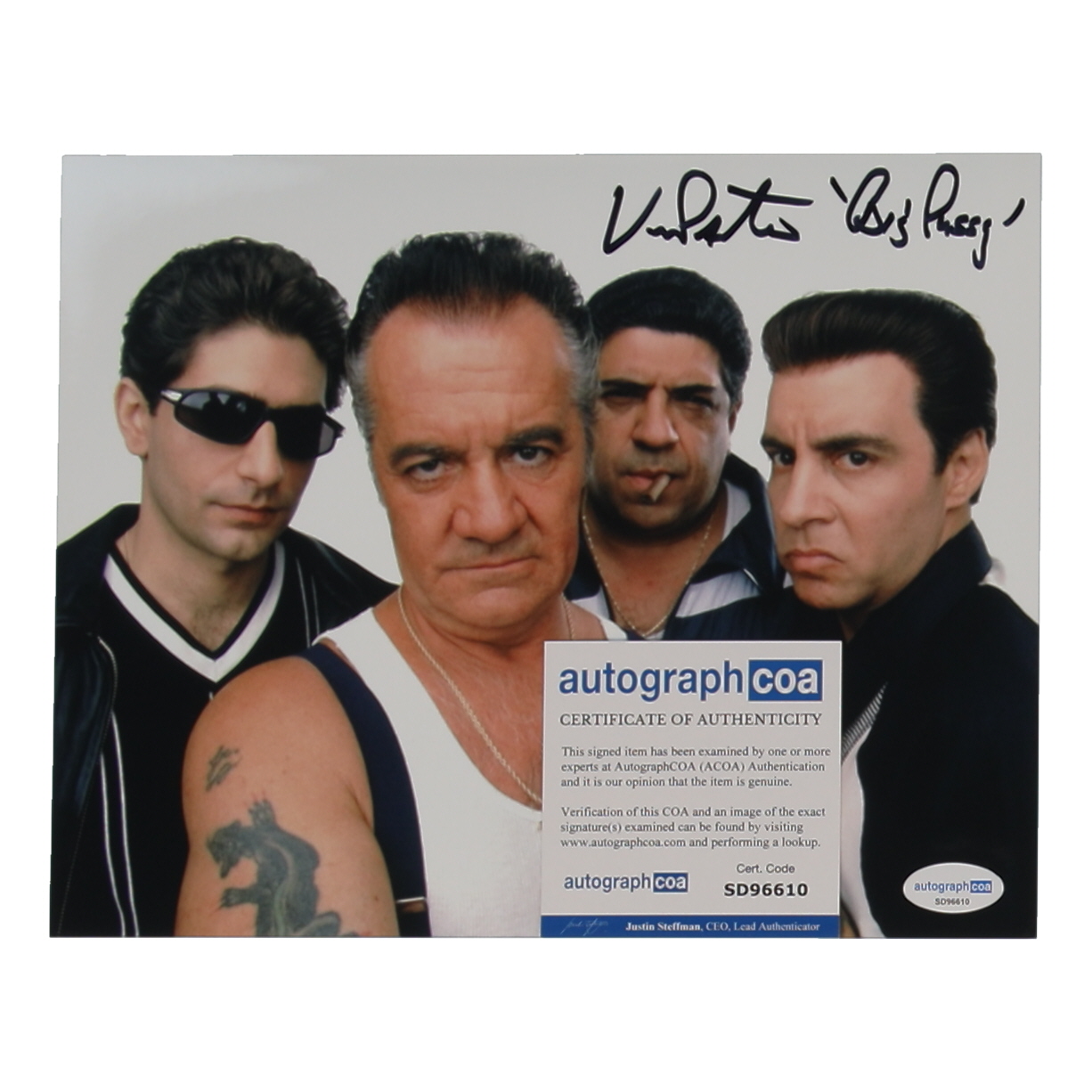 Photo measures 8" x 10" in size and has been hand-signed and inscribed by Vincent Pastore.