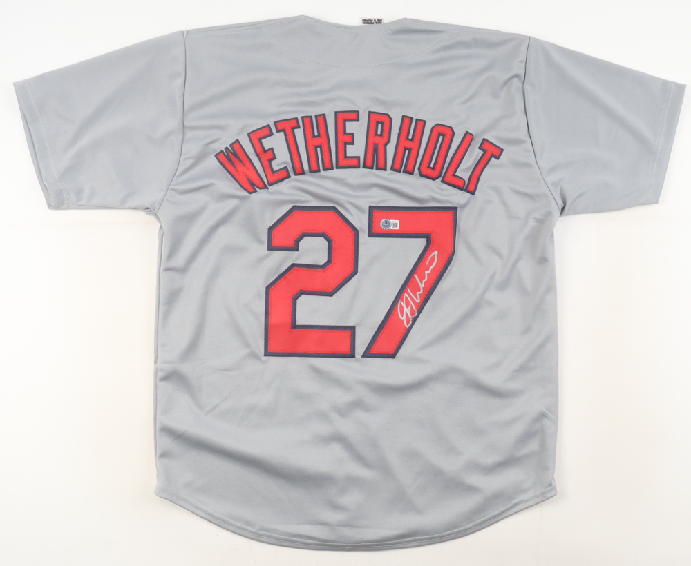 Custom jersey with everything sewn on, size XL. Hand-signed by JJ Wetherholt (St. Louis Cardinals).