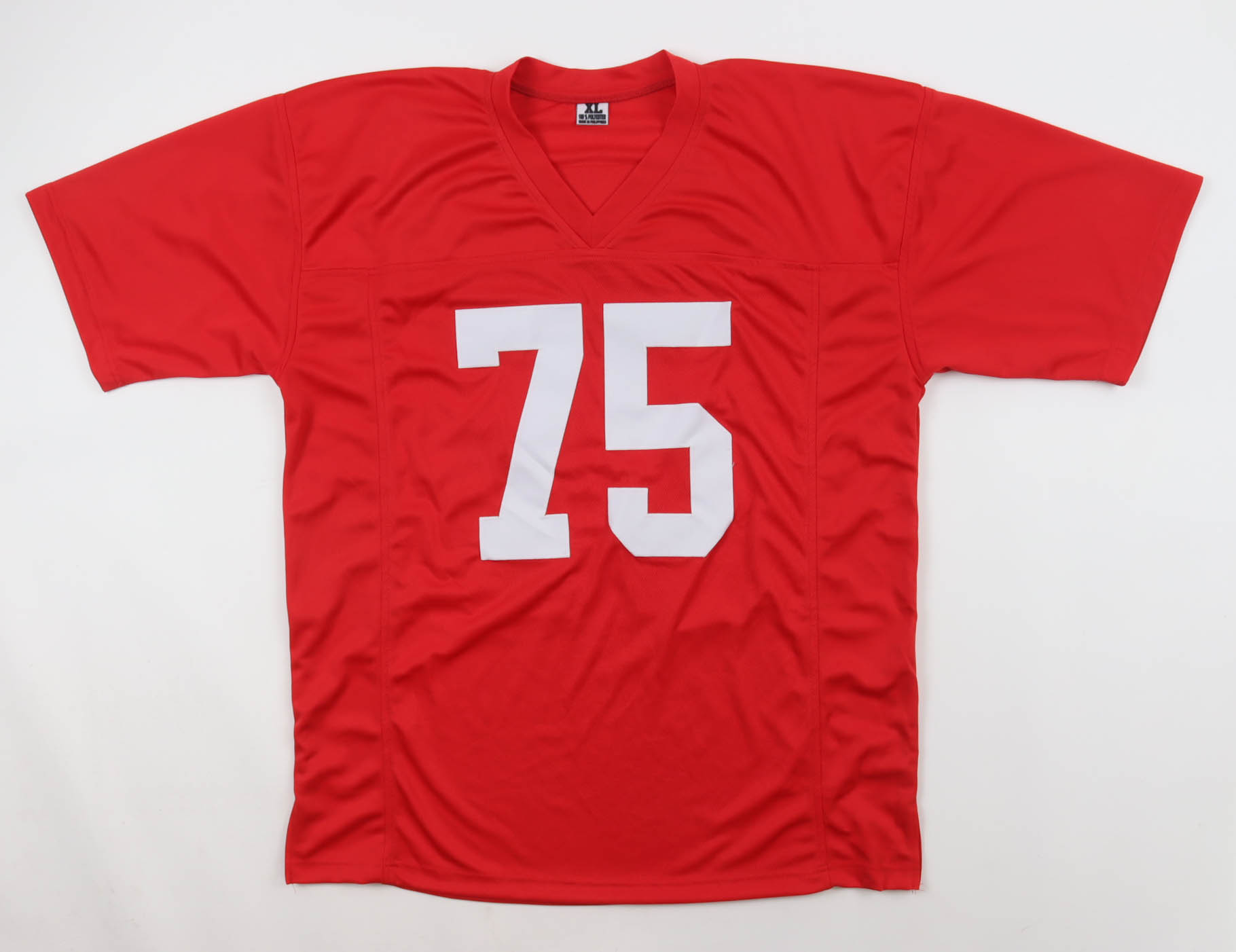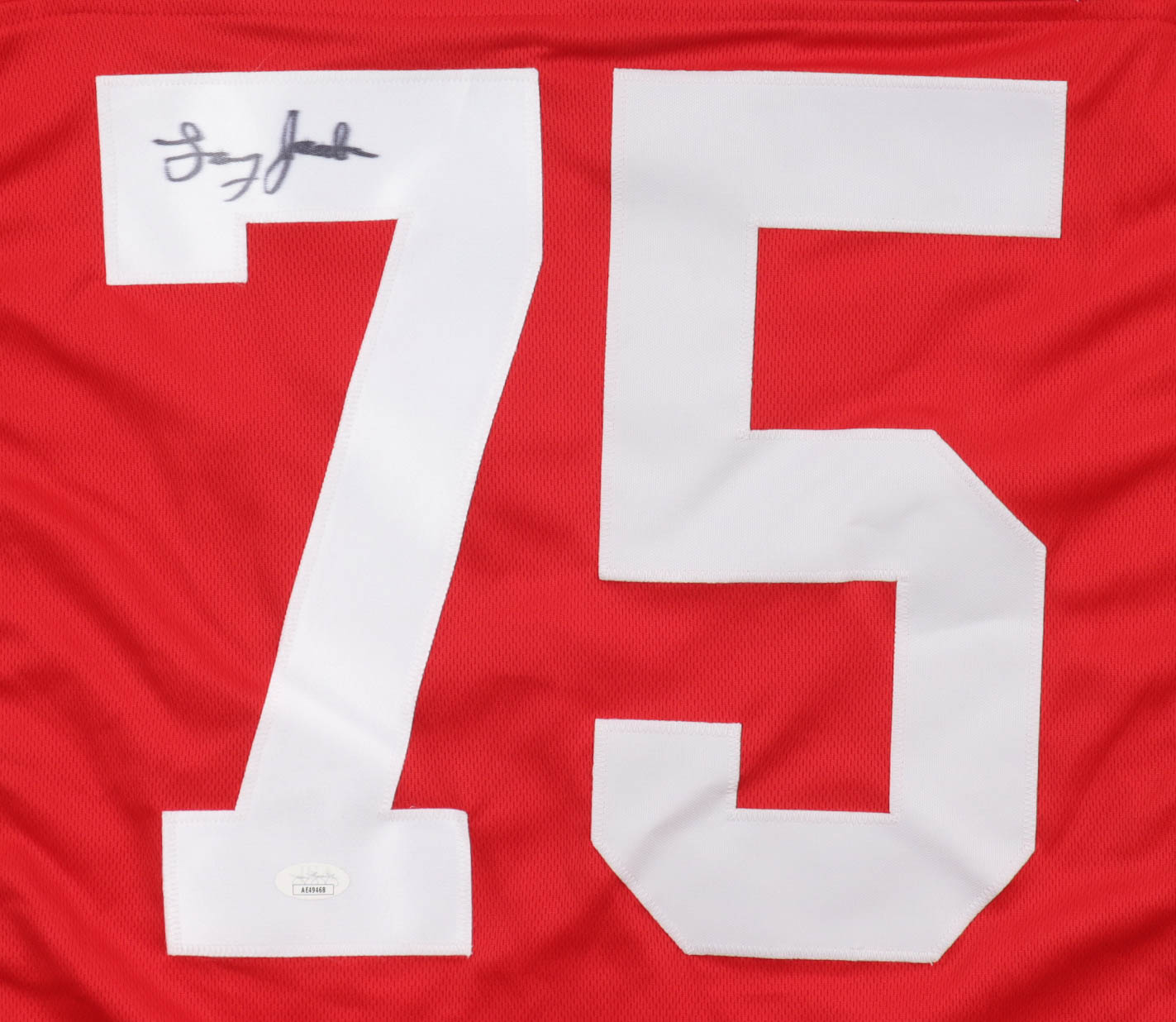 Custom Jersey. Everything sewn on, size XL, has been hand-signed by Larry Jacobson.
