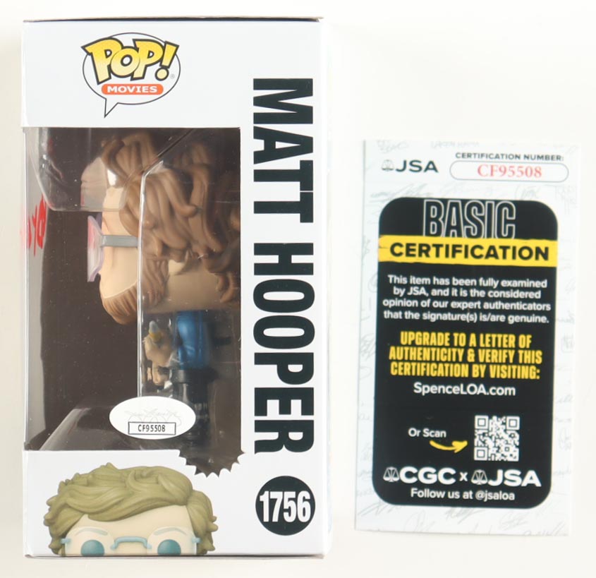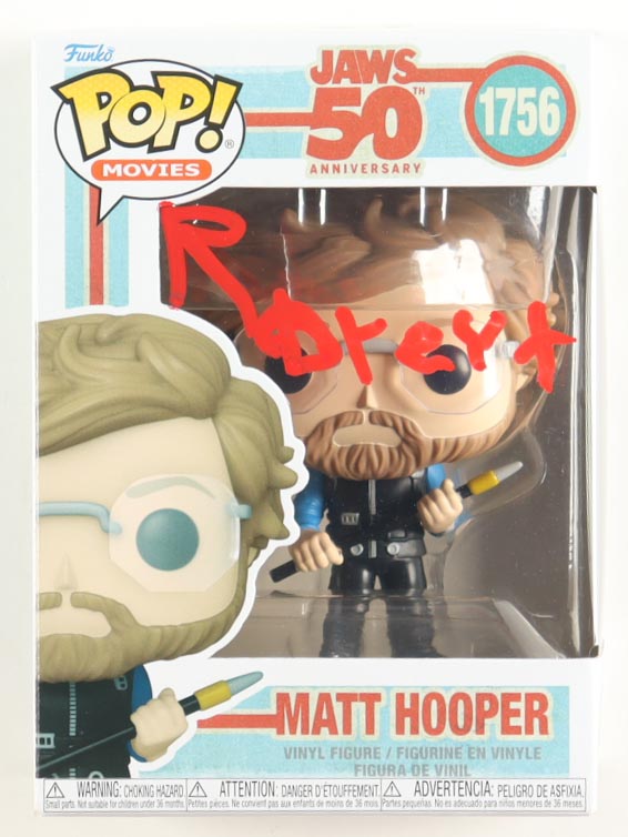 Funko Pop! vinyl figure measures approximately 4" tall. Hand-signed on the original packaging by Richard Dreyfuss (Matt Hooper).