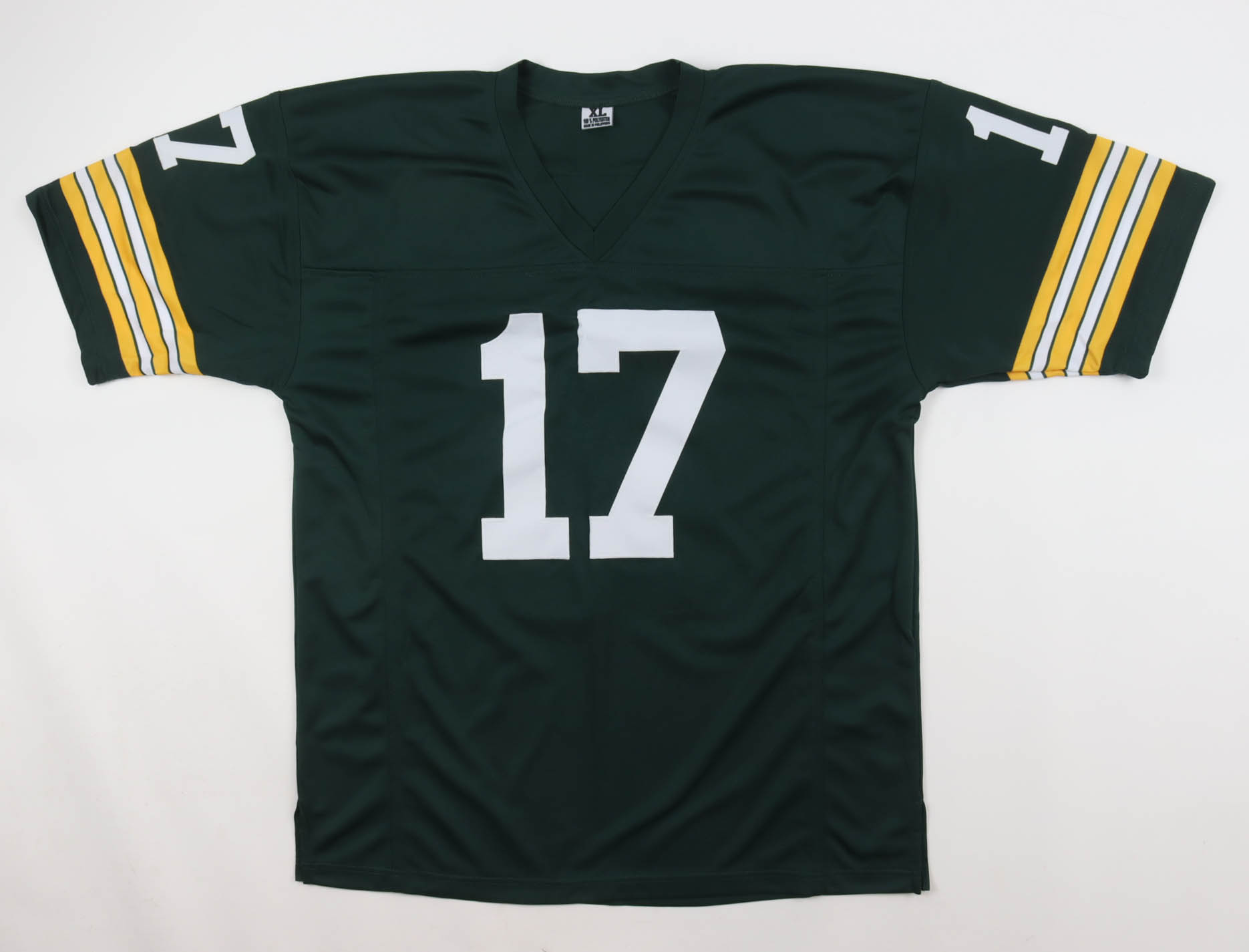 Custom jersey with everything sewn on, size XL. Hand-signed by Jerry Tagge.