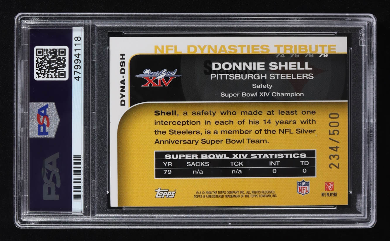 Donnie Shell 2008 Topps Dynasties Autographs #DYNADSH #234/500 (PSA 8)