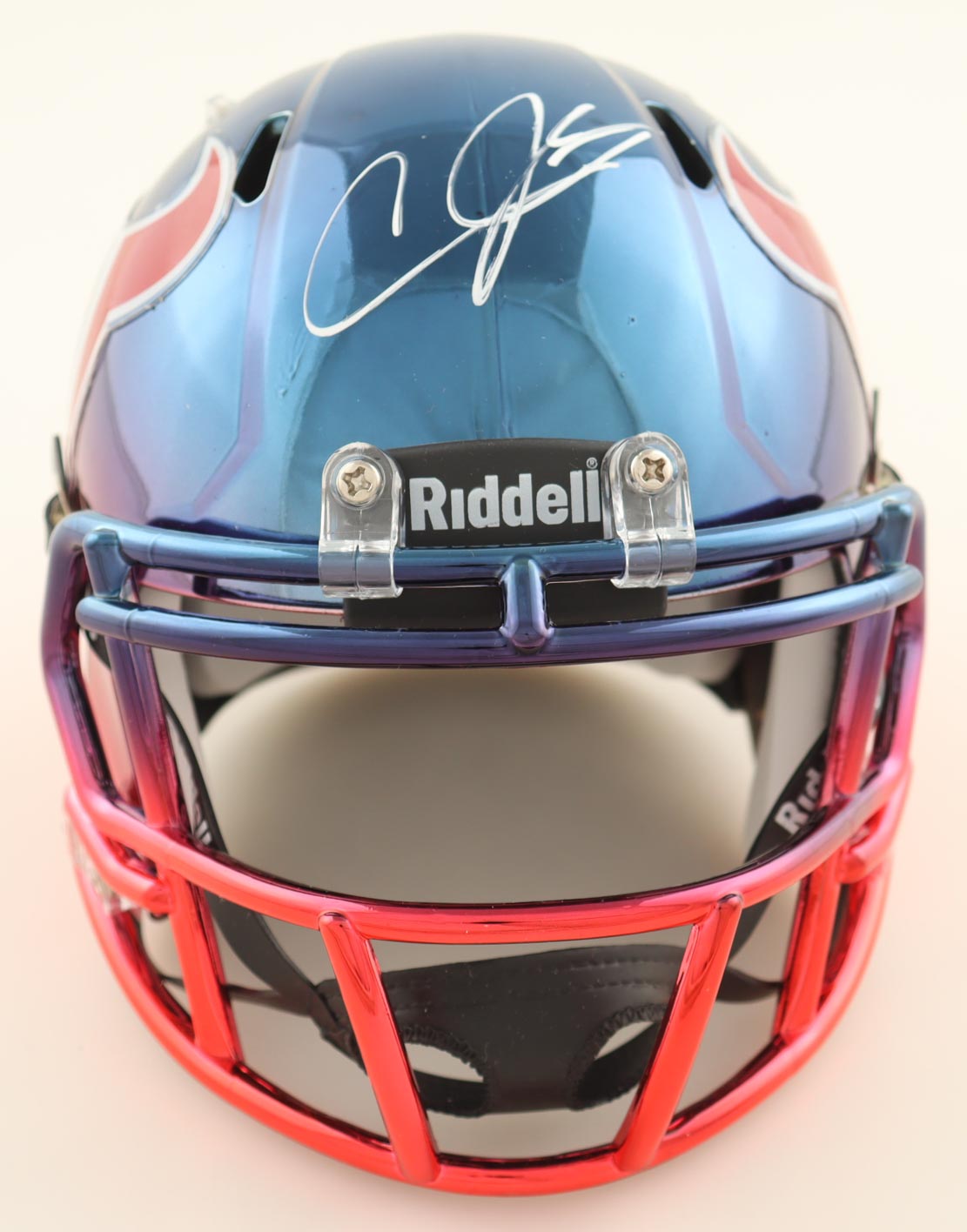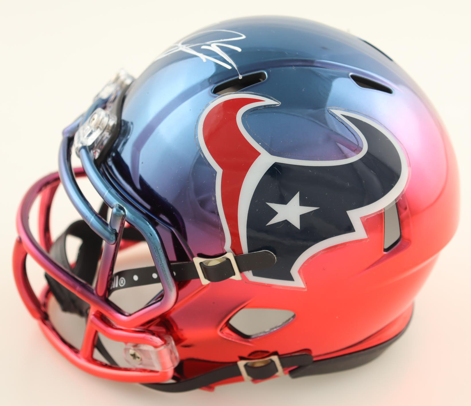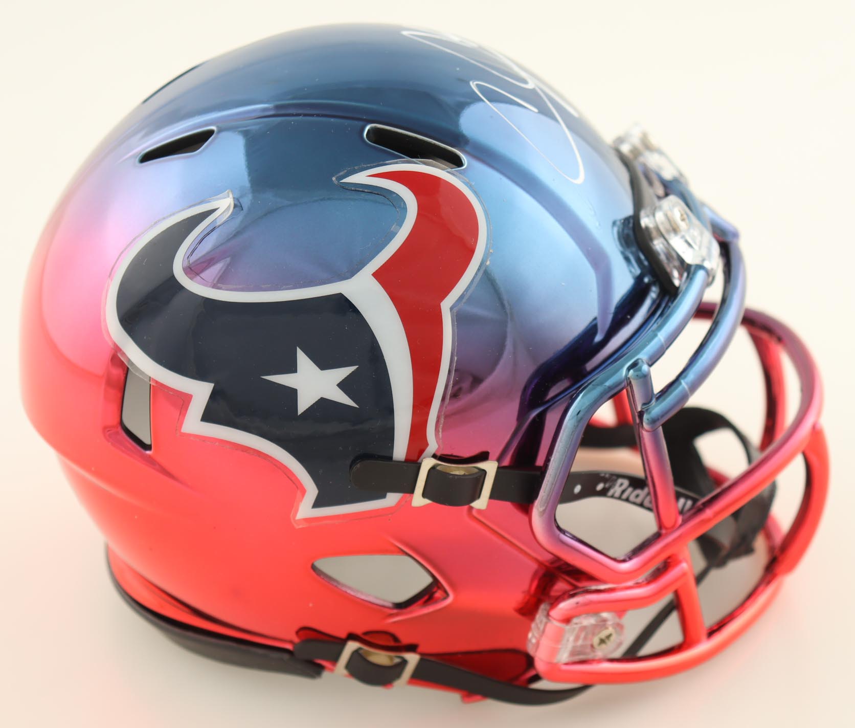 Riddell Houston Texans custom chrome Speed mini helmet. Hand-signed by Andre Johnson.