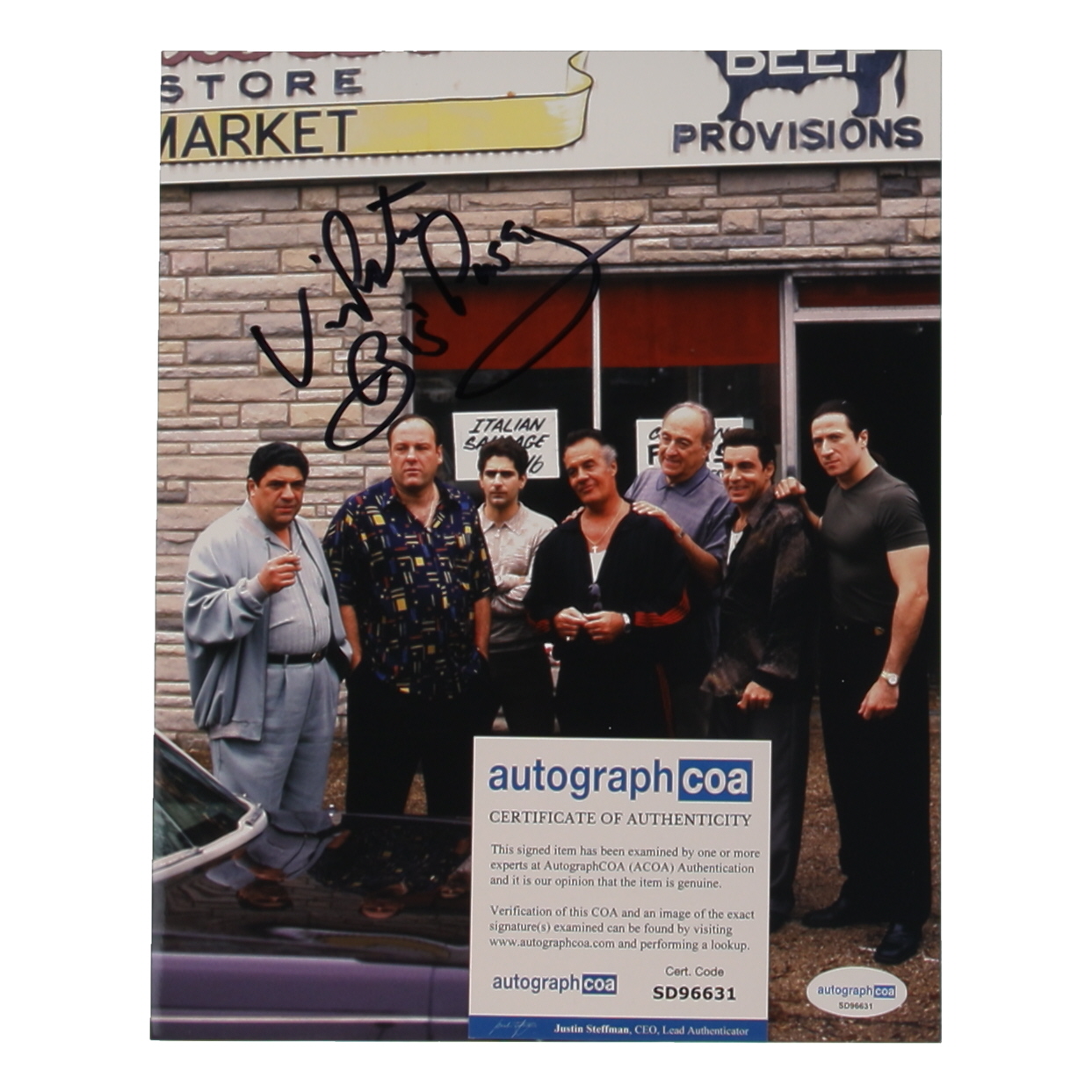 Photo measures 8" x 10" in size and has been hand-signed and inscribed by Vincent Pastore.