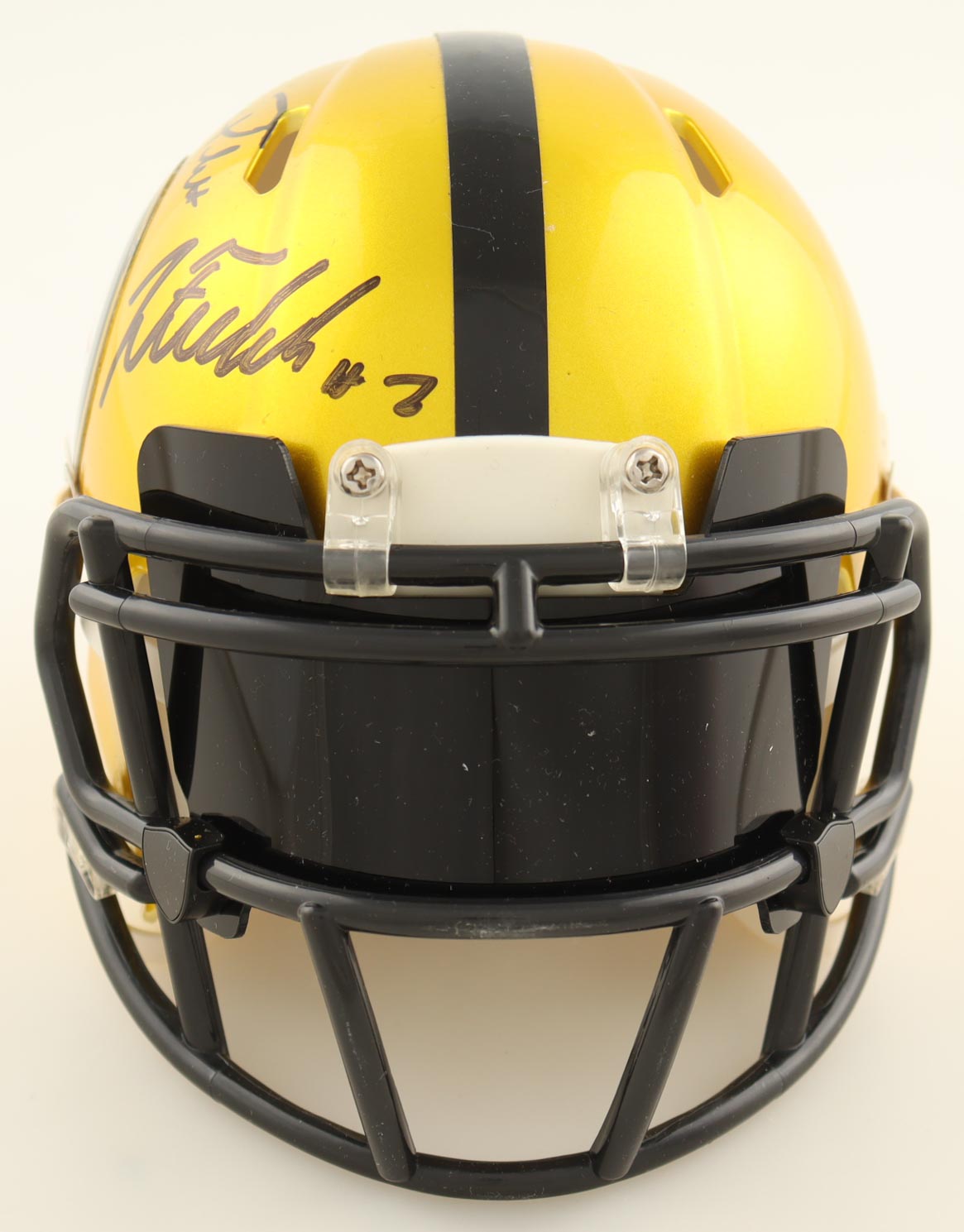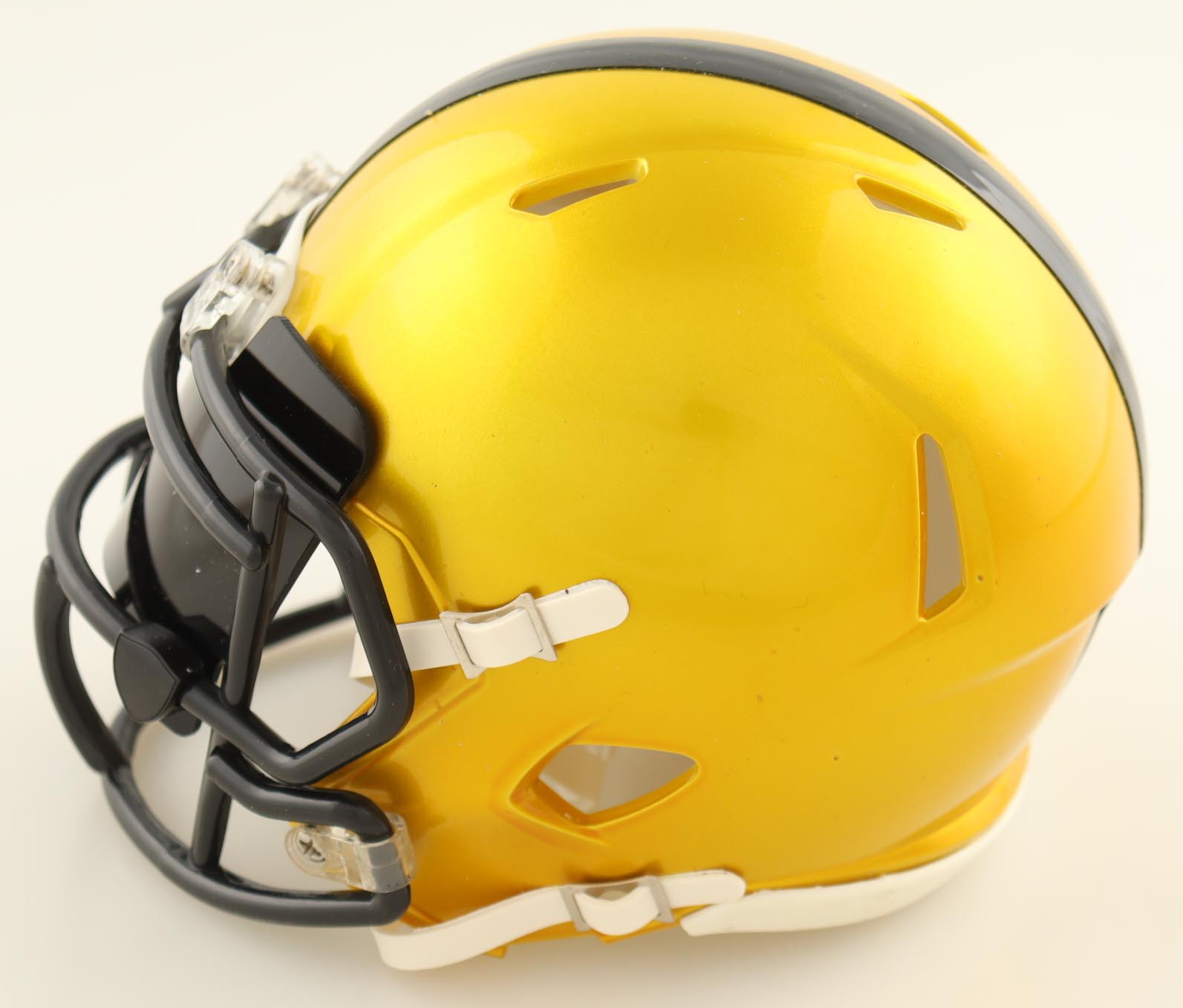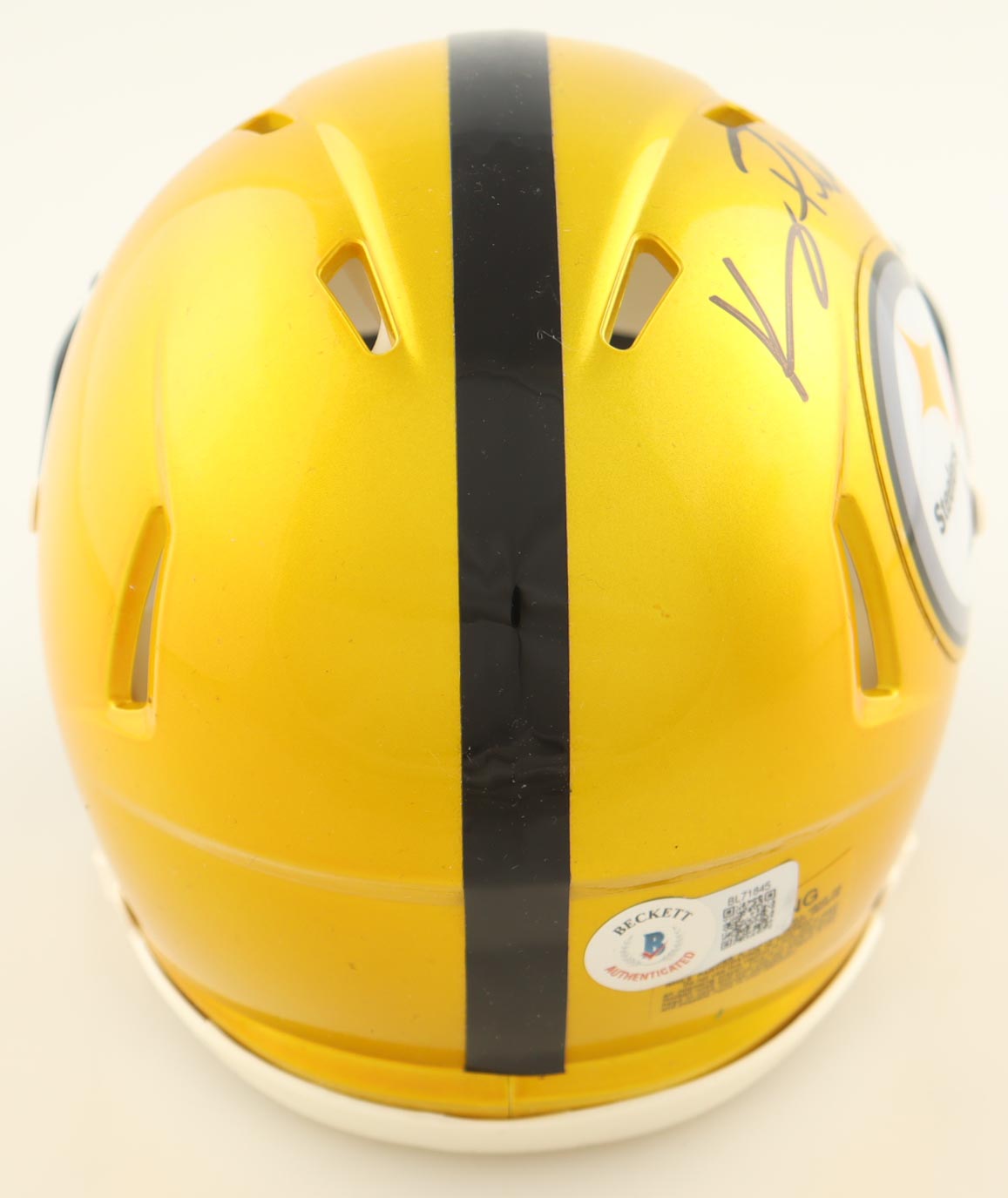 Riddell Pittsburgh Steelers Flash Alternate speed mini helmet with a visor. Hand-signed by Justin Fields and Kenny Pickett.