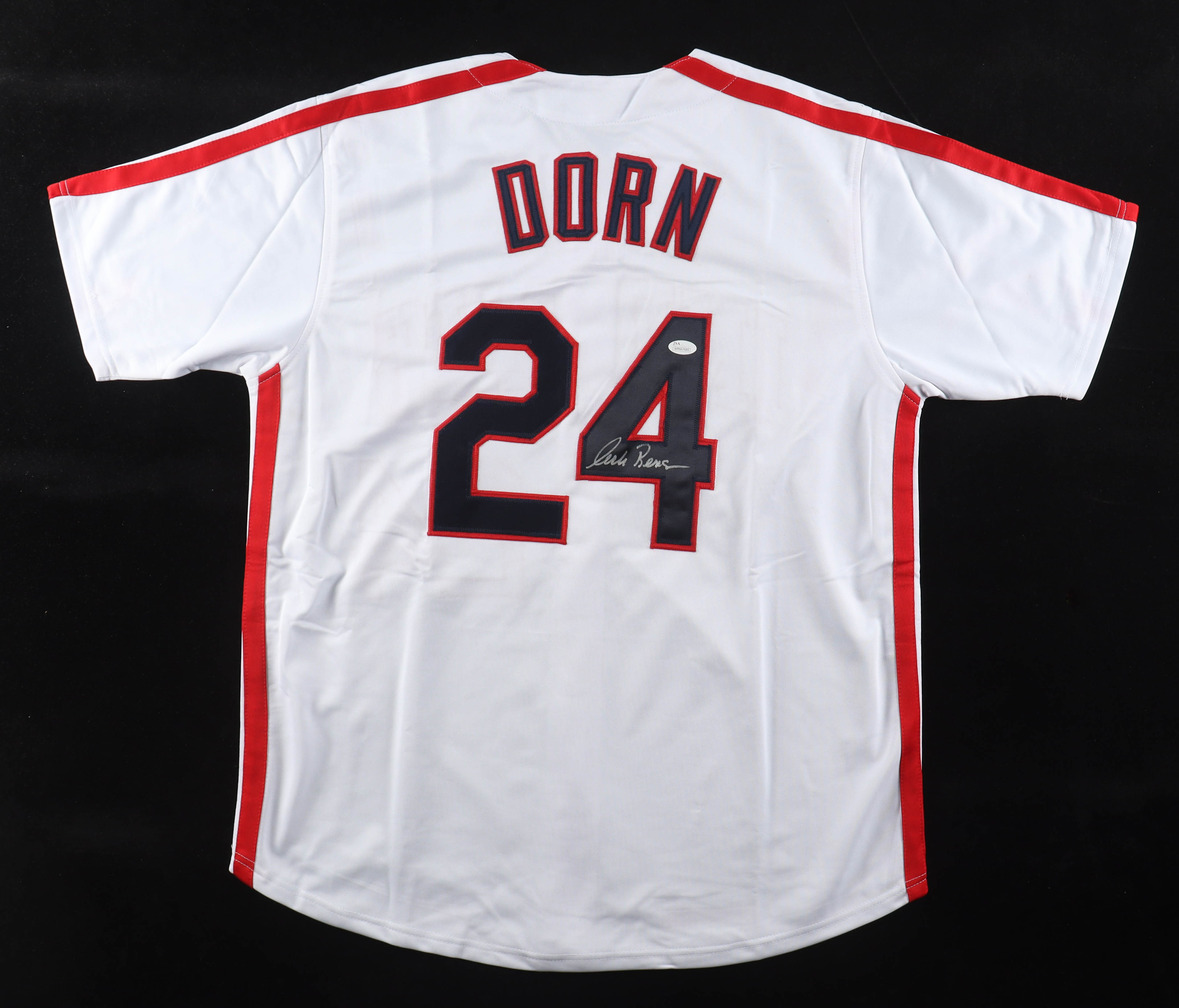 Custom jersey with everything sewn on, size XL. Hand-signed by Corbin Bernsen (Roger Dorn).