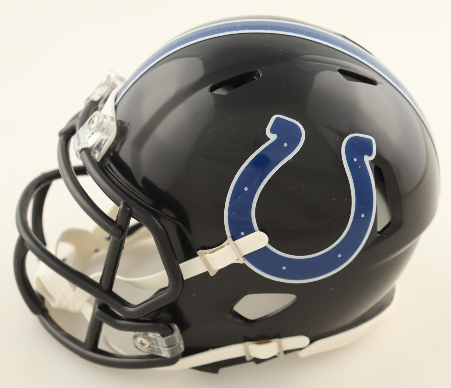 Riddell Indianapolis Colts Speed mini helmet. Hand-signed by Joe Flacco.