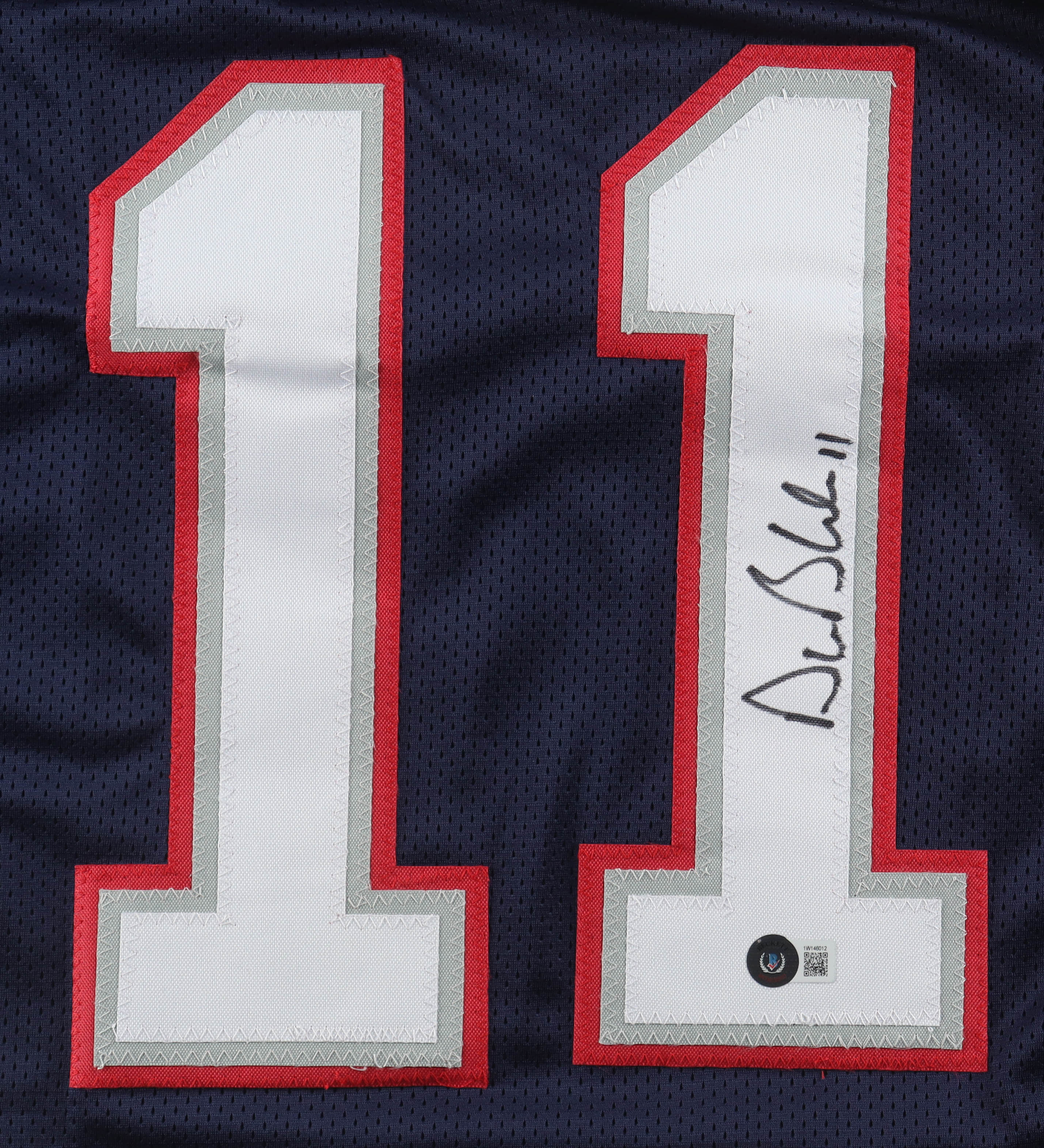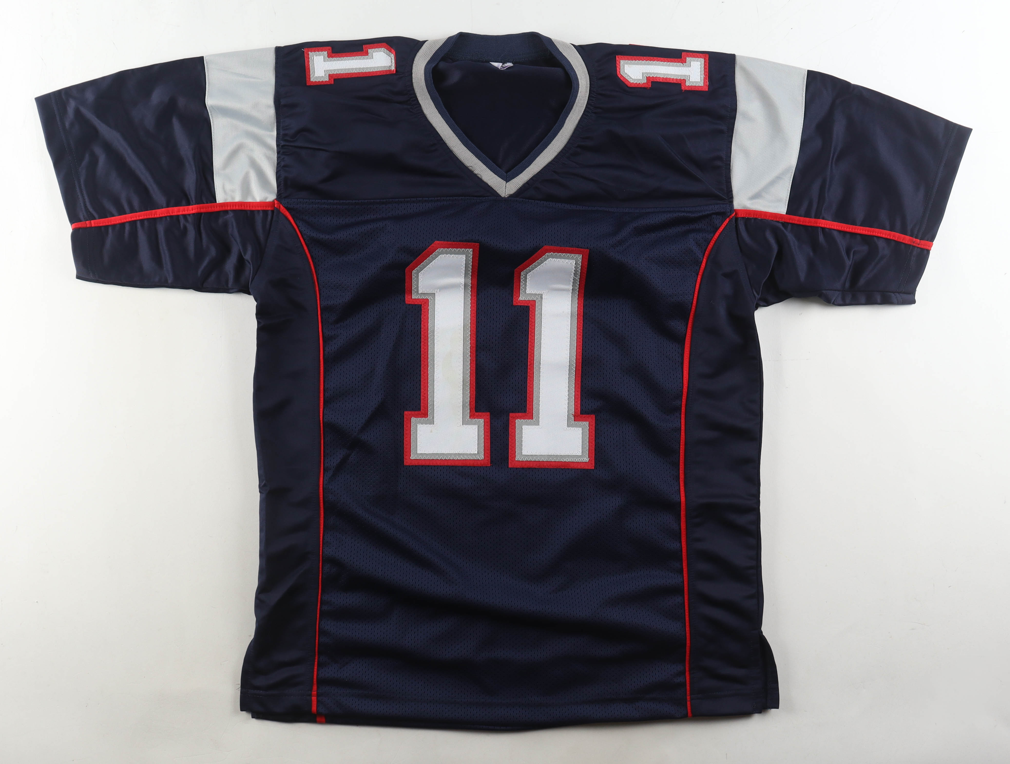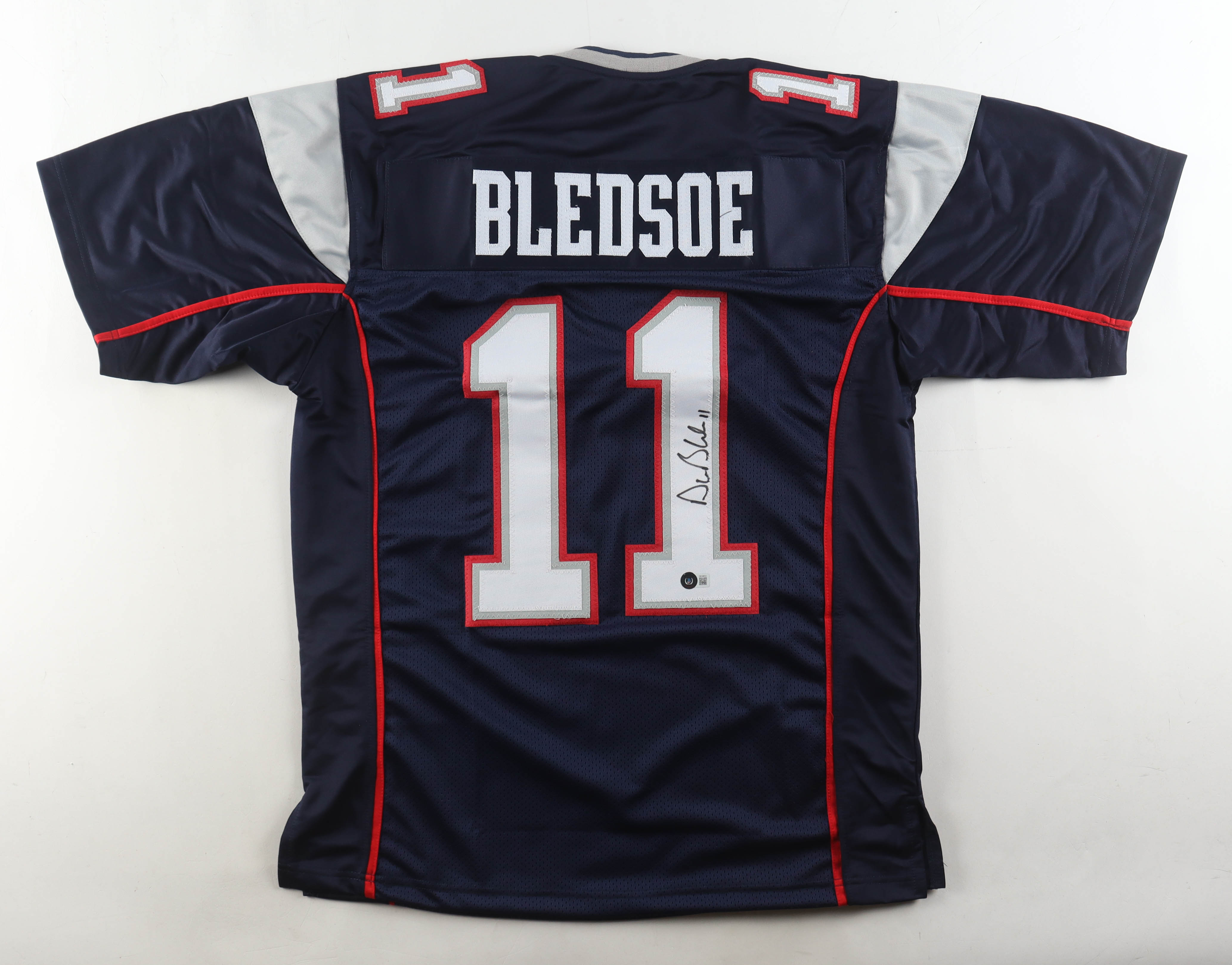 Custom jersey with everything sewn on, size XL. Hand-signed by Drew Bledsoe (New England Patriots). Please note, the front numbers are stained. See photos for more detail regarding the condition of the item.
