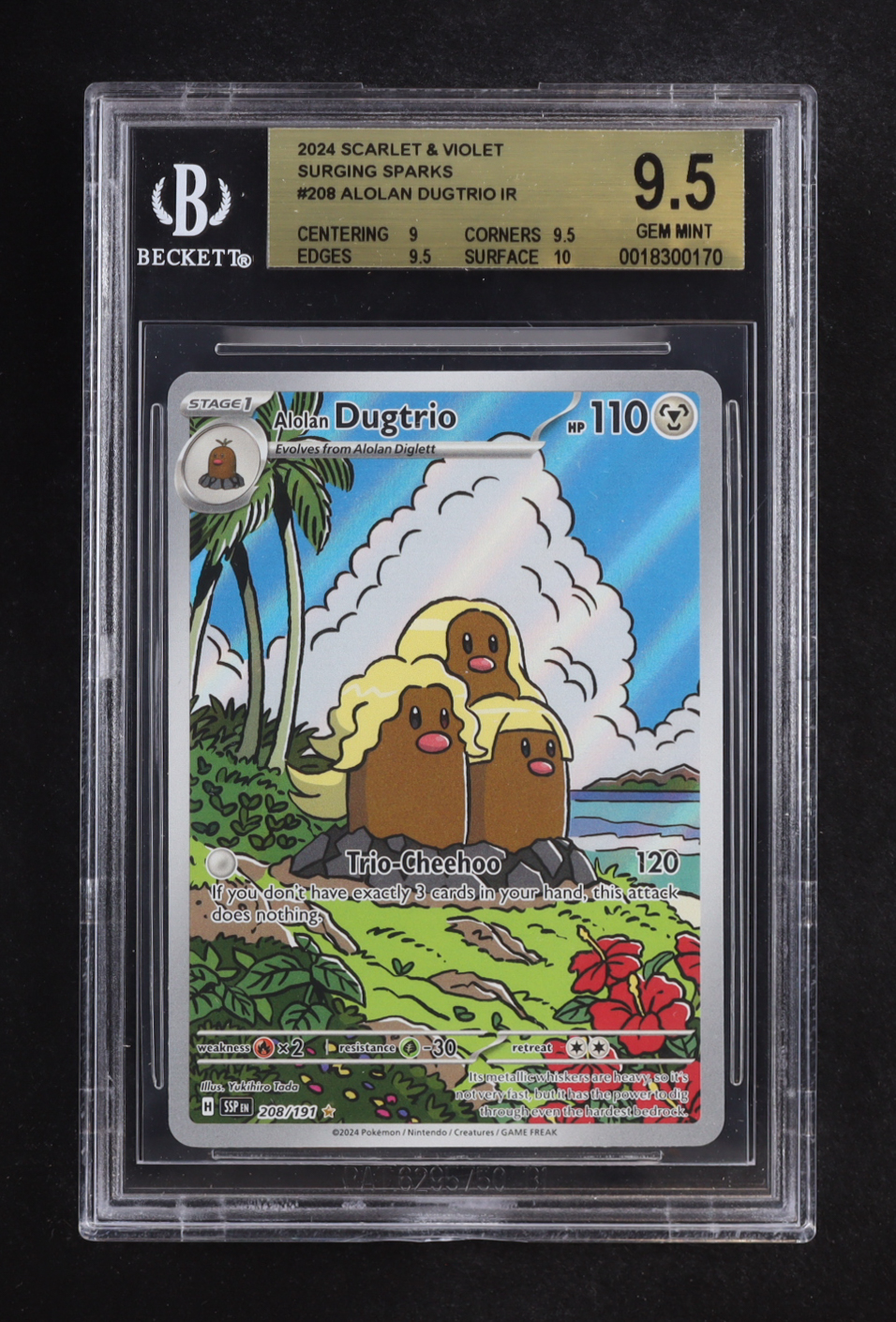 Alolan Dugtrio 2024 Pokemon Surgin Sparks #208 Holo (BGS 9.5)