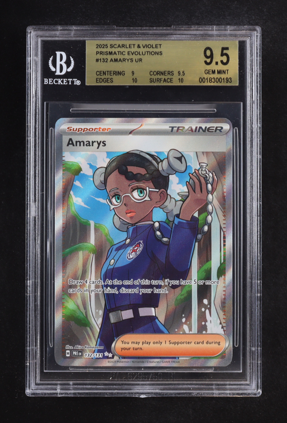 Amarys 2025 Pokemon Prismatic Evolutions #132 Holo (BGS 9.5)