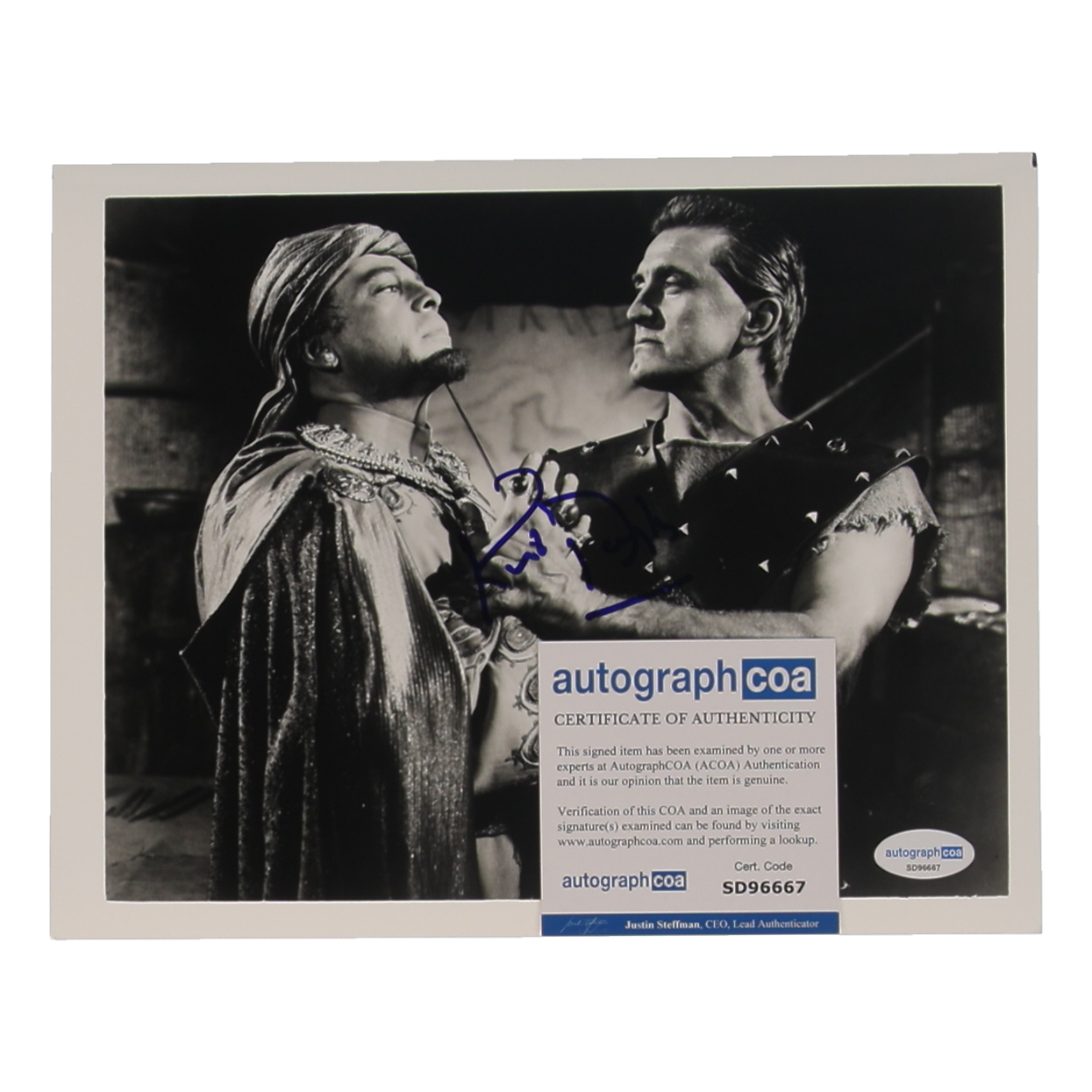Photo measures 8" x 10" and has been hand-signed by Kirk Douglas (D. 2020).
