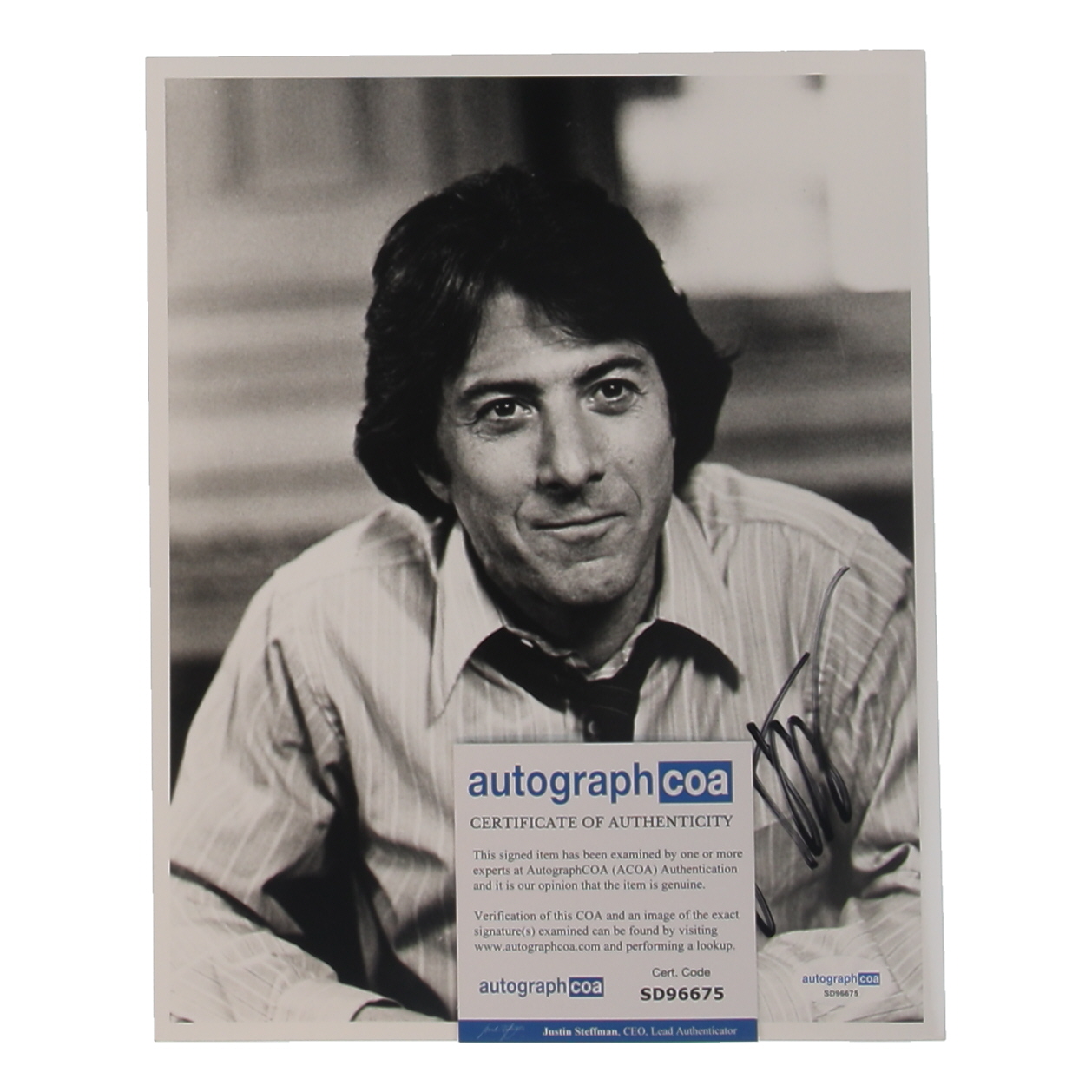 Photo measures 8" x 10" in size and has been hand-signed by Dustin Hoffman.