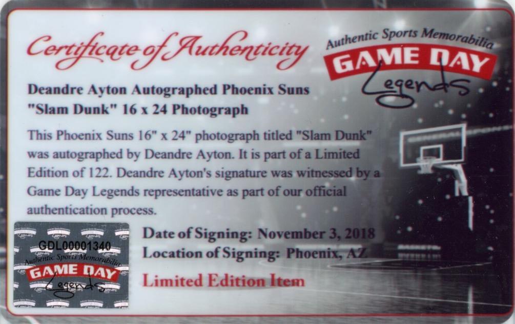 Deandre Ayton Signed LE Suns "Slam Dunk" 16x24 Photo (Game Day Legends & Steiner)