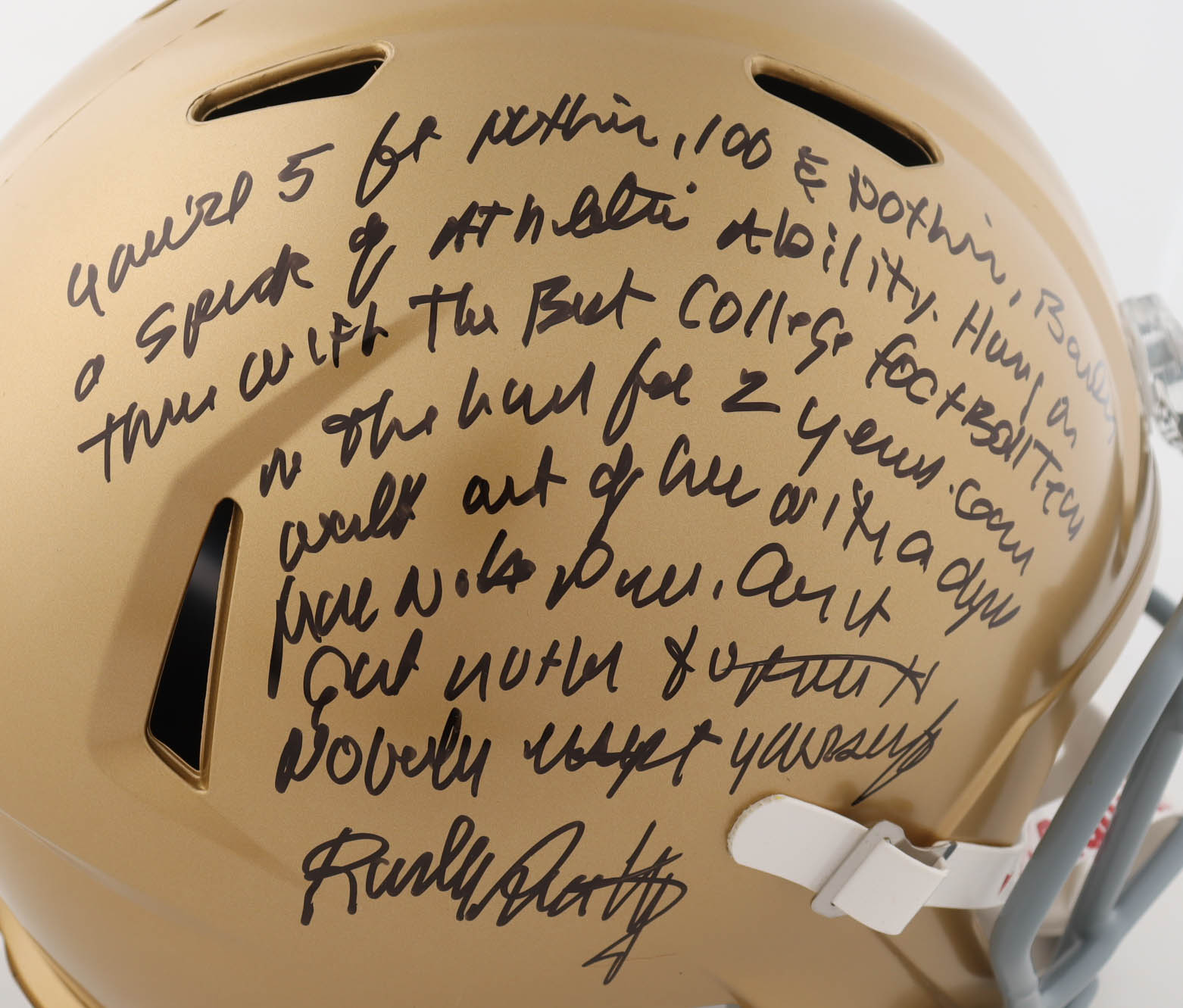 Rudy Ruettiger Signed Notre Dame Fighting Irish Full-Size Helmet with Extensive Inscription (Beckett)