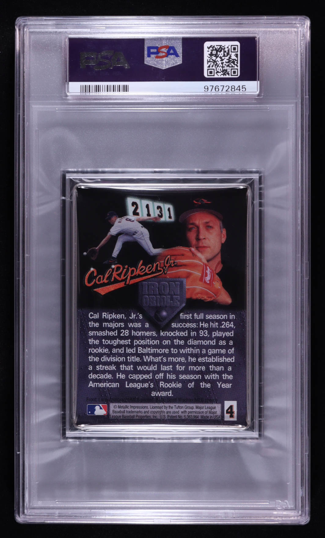 Cal Ripken Jr. 1996 Metallic Impressions Ripken #4 / Leaping Grab in Field (PSA 8)