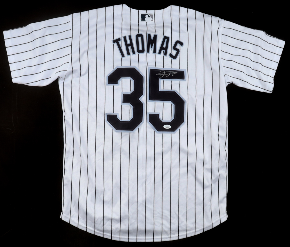 Nike authentic jersey with everything sewn on, size XL. Hand-signed by Frank Thomas (Chicago White Sox, HOF).