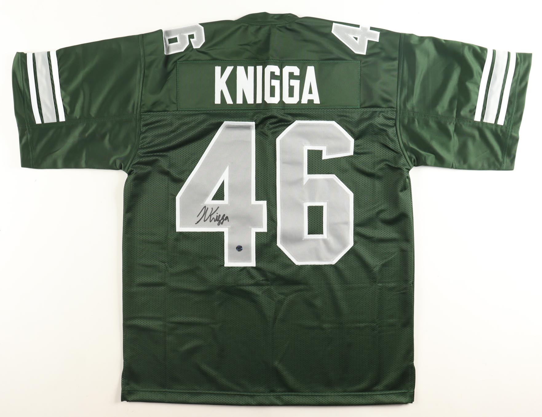 Custom jersey with everything sewn on, size XL. Hand-signed by Noah Knigga.