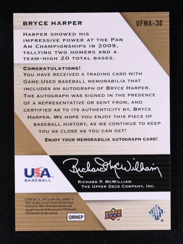 Bryce Harper 2009 Upper Deck Signature Stars USA National Team Future Watch Jersey Autographs #30 RC #321/899