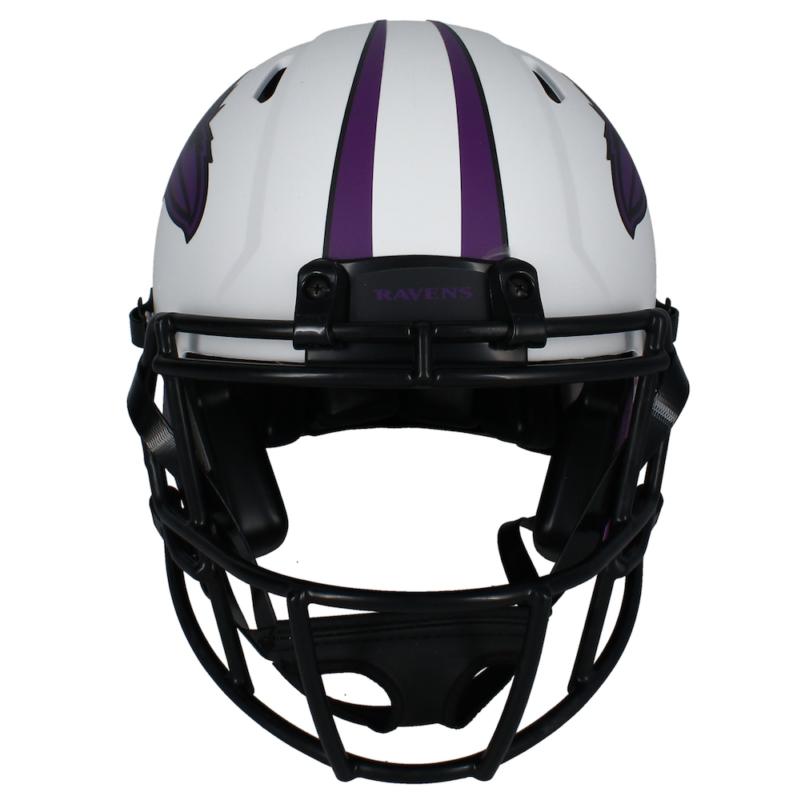 Riddell Baltimore Ravens full-size authentic on-field lunar eclipse "drip" alternate speed helmet. Hand-signed by Ray Lewis (HOF).