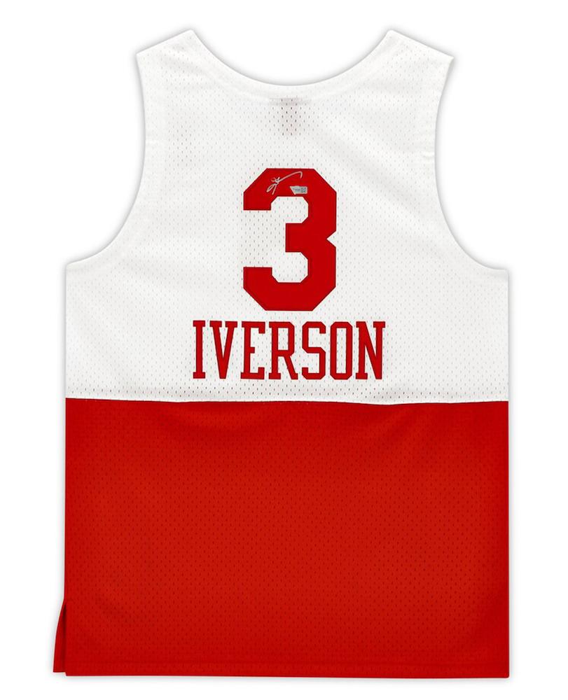 Mitchell & Ness style jersey. Everything sewn on, size 48. Hand-signed by Allen Iverson (Philadelphia 76ers, HOF).