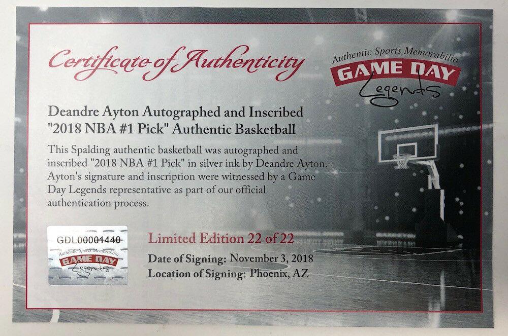 Deandre Ayton Signed LE Official NBA Game Ball Inscribed "2018 NBA #1 Pick" (Game Day Legends & Steiner)