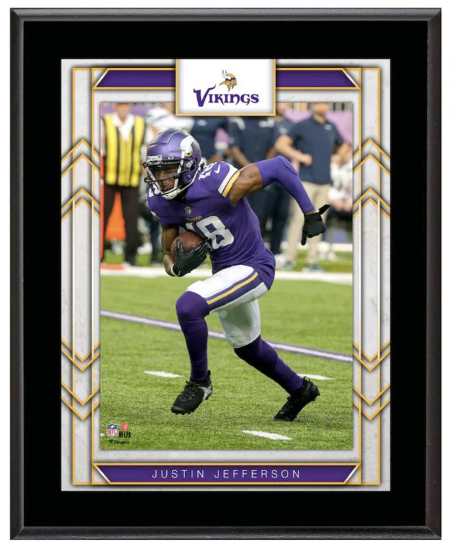 Sublimated player plaque measures 10" x 13" in size and features Justin Jefferson (Minnesota Vikings). Please note, this item is unsigned.