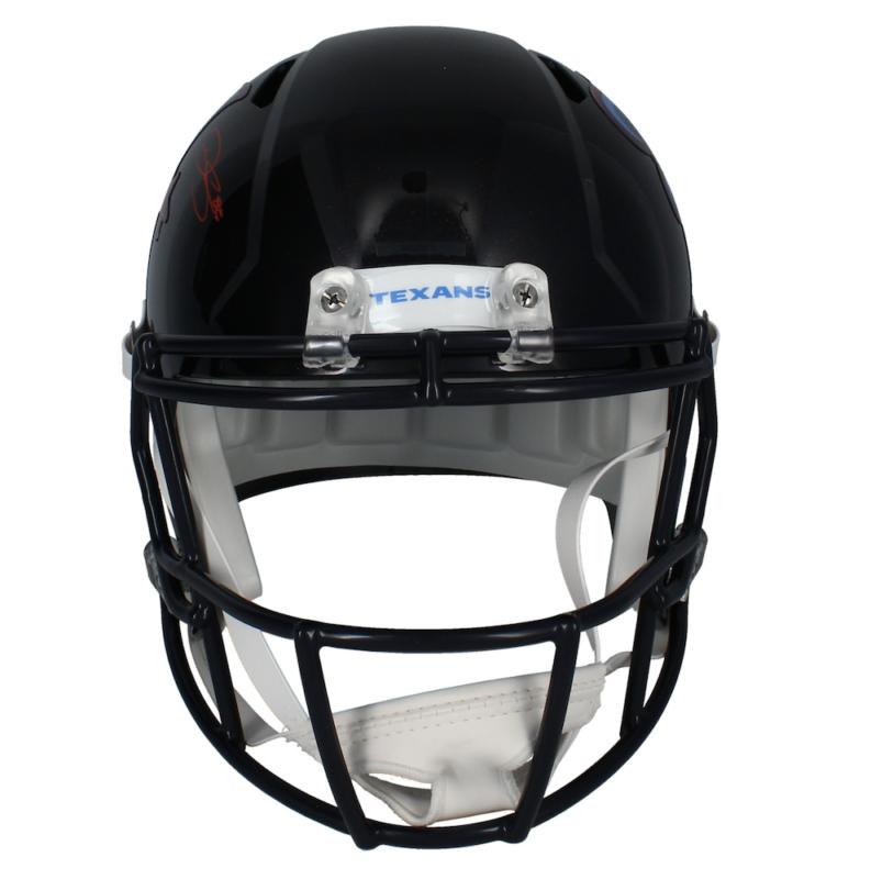 Riddell Houston Texans full-size alternate speed replica helmet has been hand-signed by Dalton Schultz.