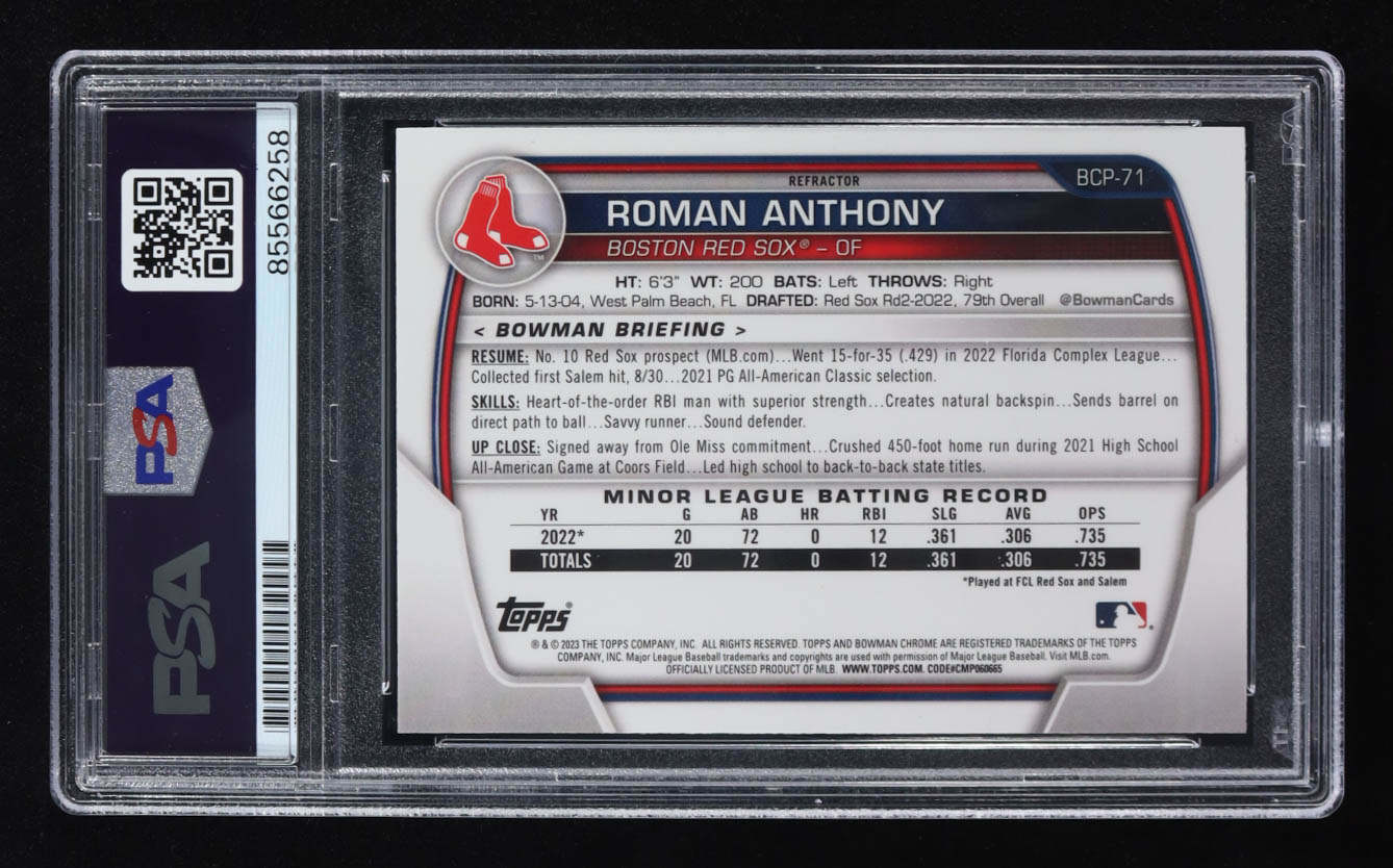 Roman Anthony Signed 2023 Bowman Chrome Prospects Lunar Glow Refractors #BCP71 RC (PSA Authentic)