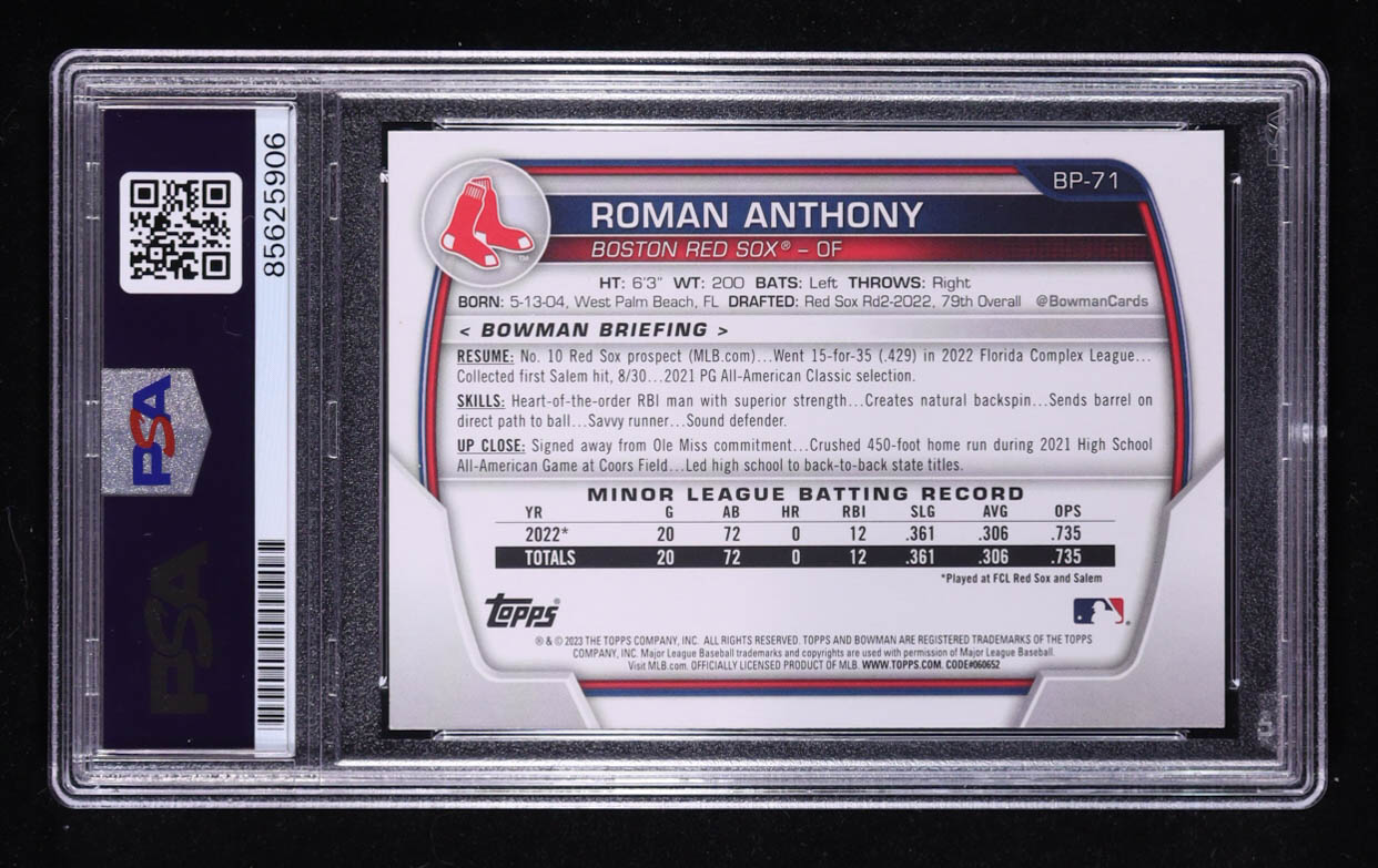 Roman Anthony Signed 2023 Bowman Prospects #BP71 RC (PSA Authentic | Auto 10)