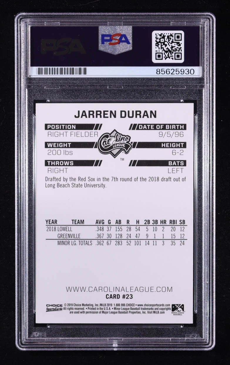 Jarren Duran Signed 2019 Carolina League Top Prospects Choice #23 RC (PSA Authentic | Auto 10)