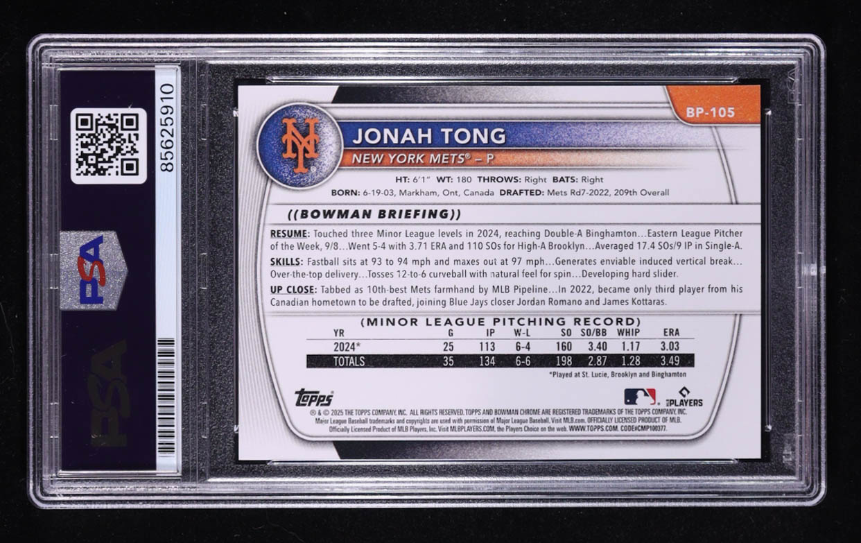 Jonah Tong Signed 2025 Bowman Prospects #BP105 RC (PSA Authentic | Auto 10)