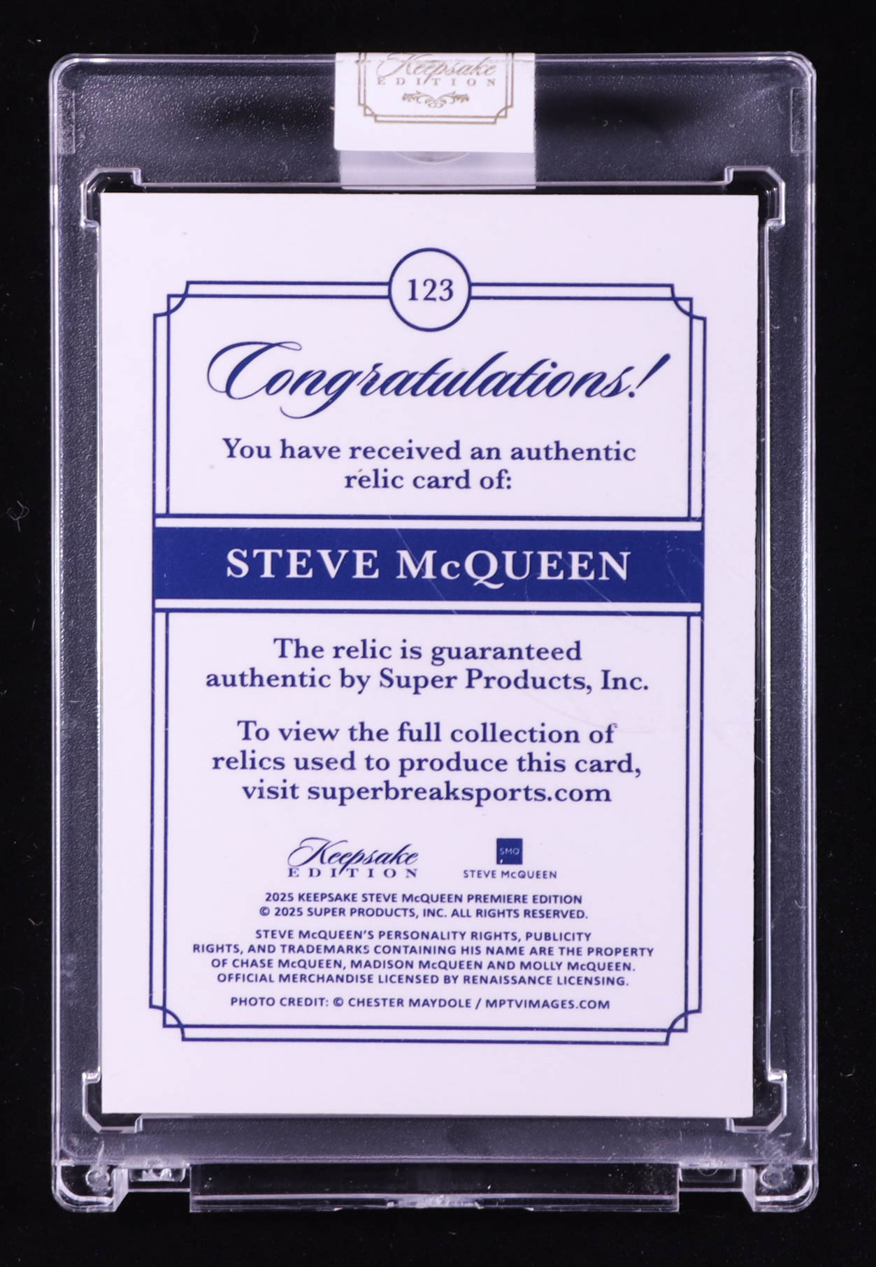 Steve McQueen 2025 Keepsake Edition Authentic Relic #123 #18/50