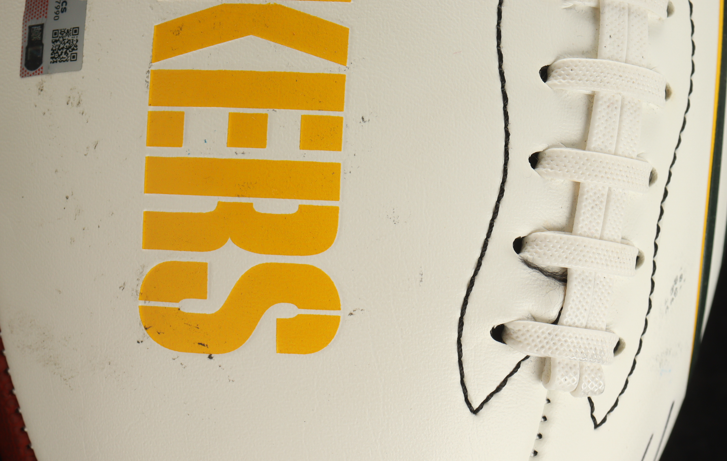 Green Bay Packers logo football has been hand-signed by Luke Musgrave. Please note, there is scuffing on the football.