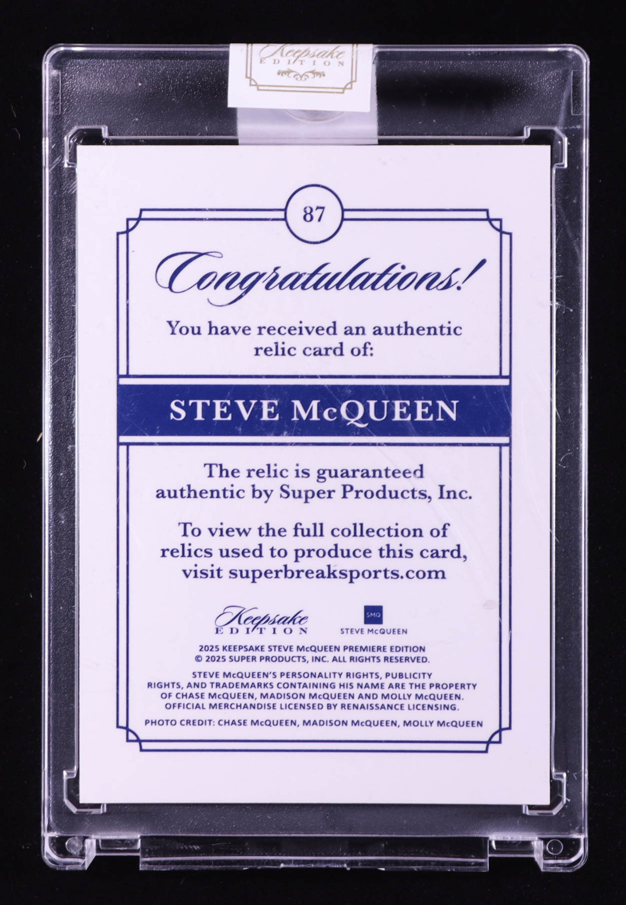Steve McQueen 2025 Keepsake Edition Iconic Posters Authentic Relic #87 #13/50