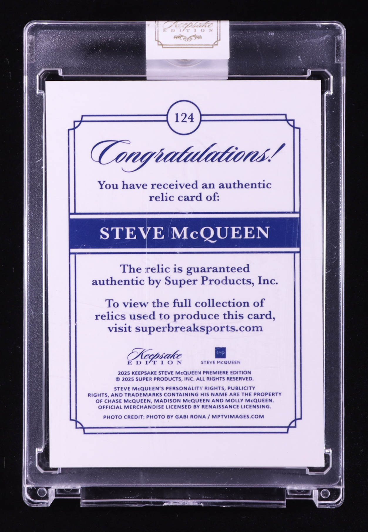 Steve McQueen 2025 Keepsake Edition Authentic Relic #124 #13/50