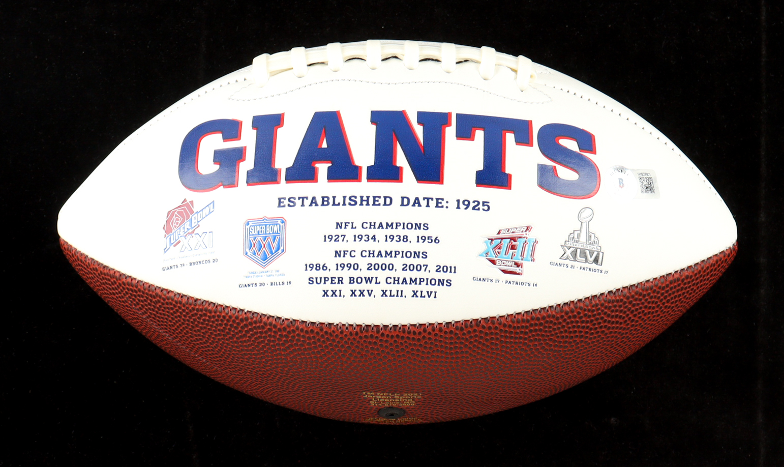 New York Giants logo football has been hand-signed by Tommy DeVito.
