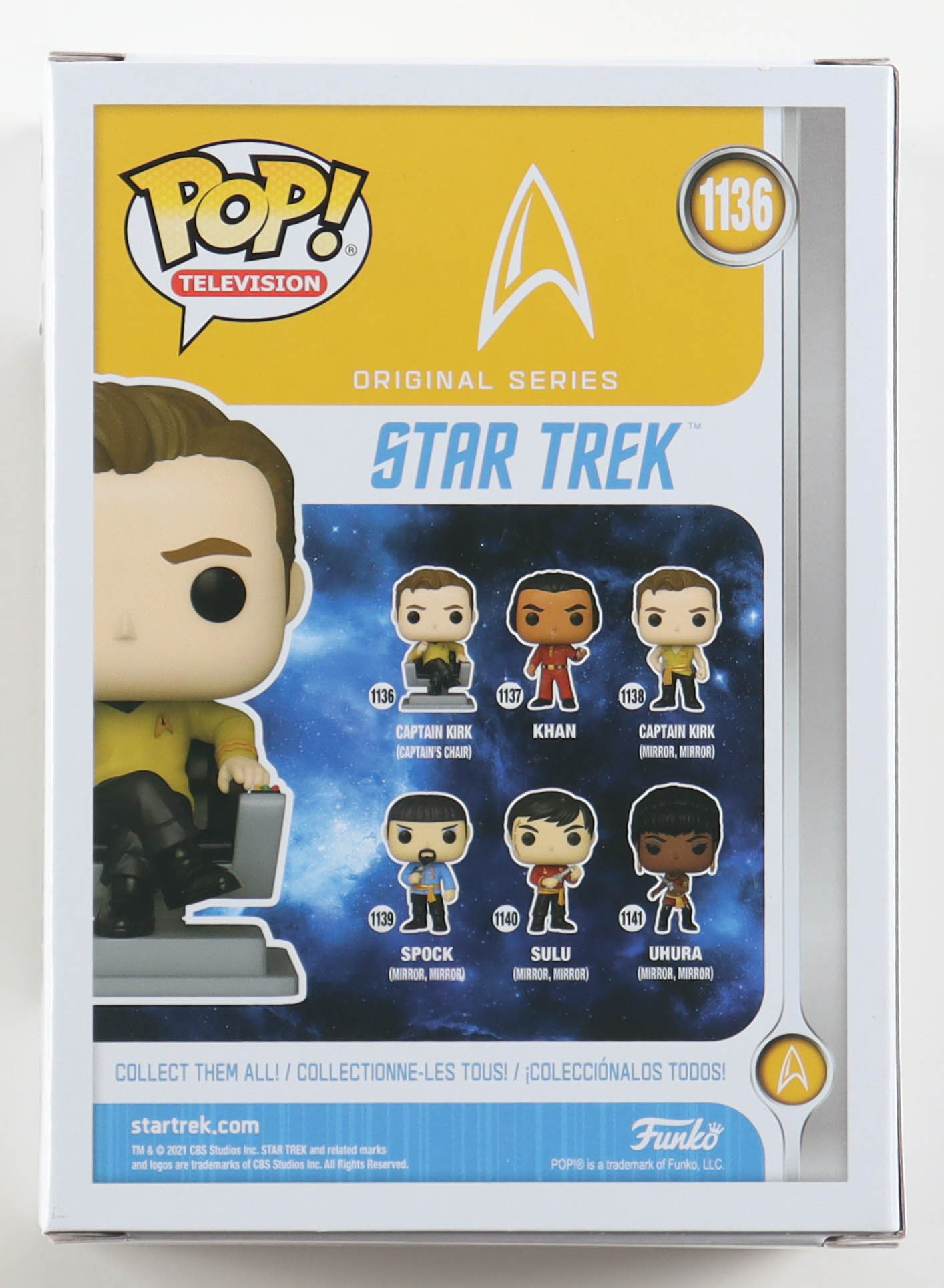 Vinyl figure measures approximately 4" tall and has been hand-signed on the packaging by William Shatner (Captain James T. Kirk).
