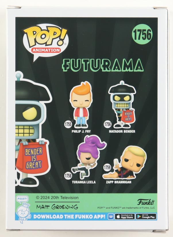 John DiMaggio Signed "Futurama" #1756 Matador Bender Funko Pop! Vinyl Figure Inscribed "Bender" (JSA)