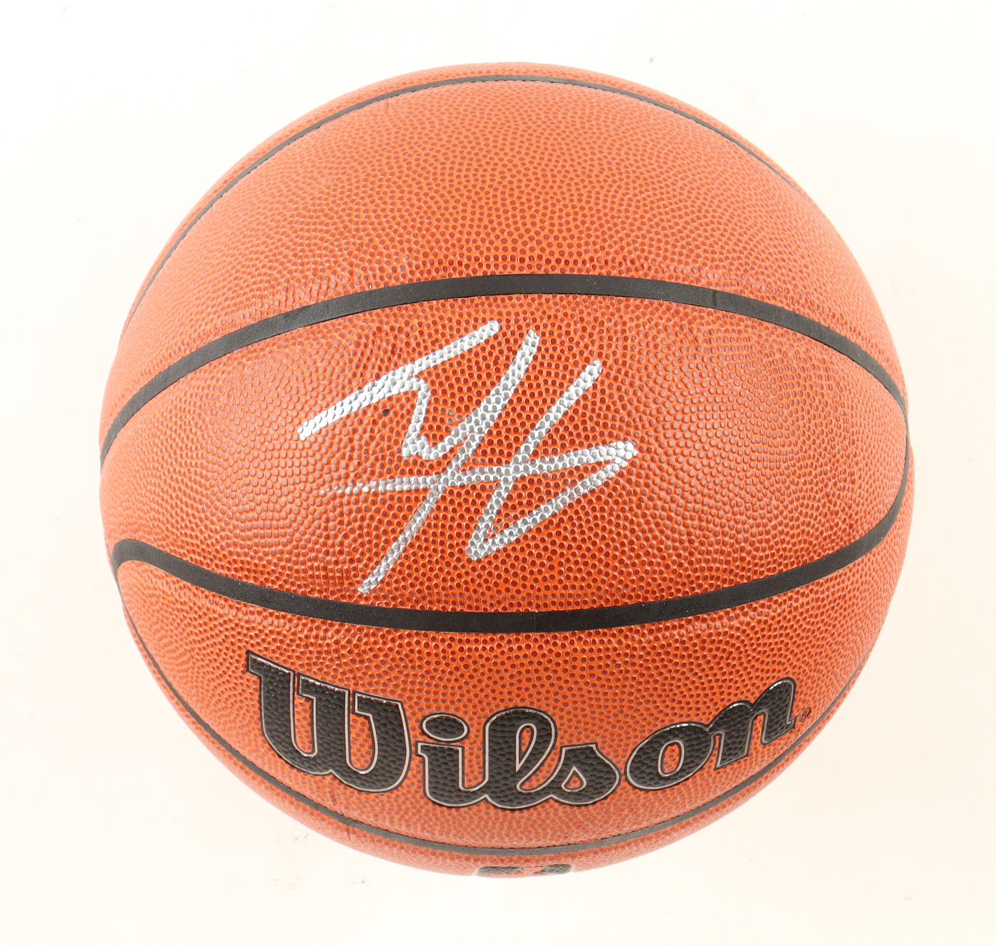 Wilson Authentic Series NBA basketball has been hand-signed by Taylor Hendricks (Utah Jazz).