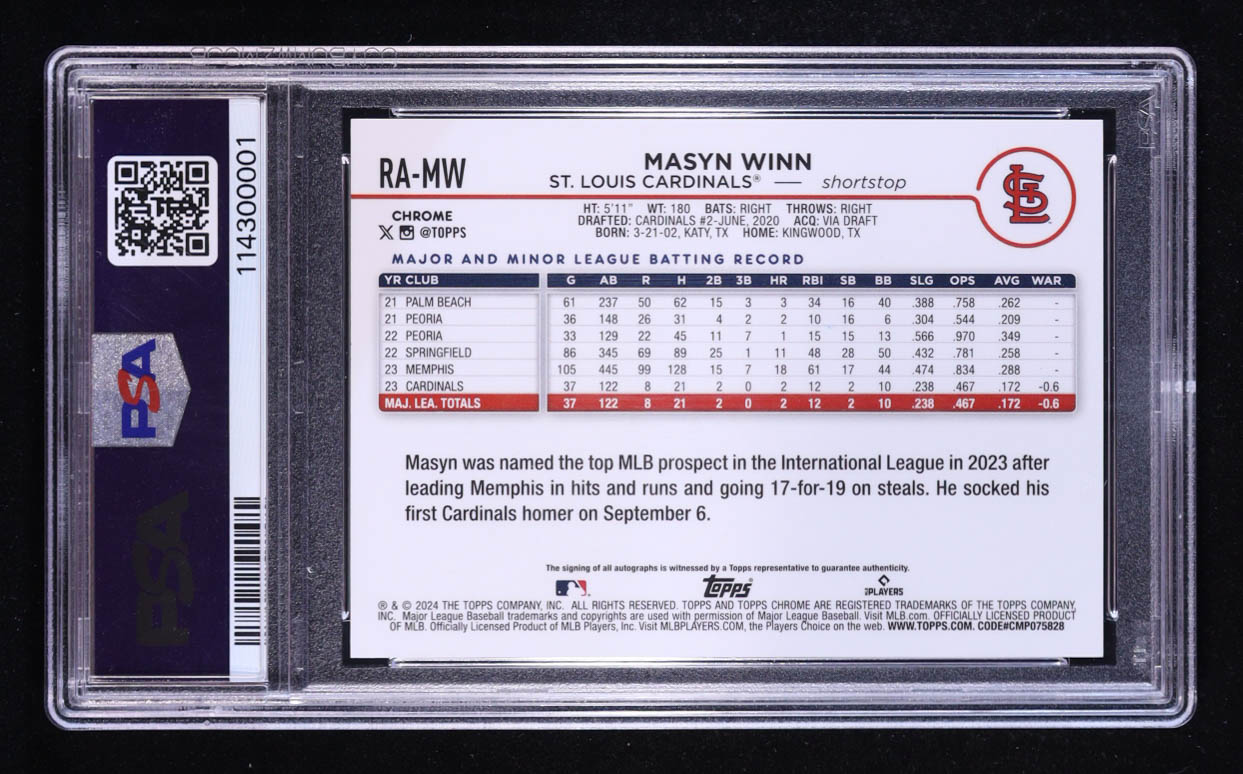 Masyn Winn 2024 Topps Chrome Rookie Autographs Aqua Wave Refractors #RAMW #129/199 RC (PSA 9)