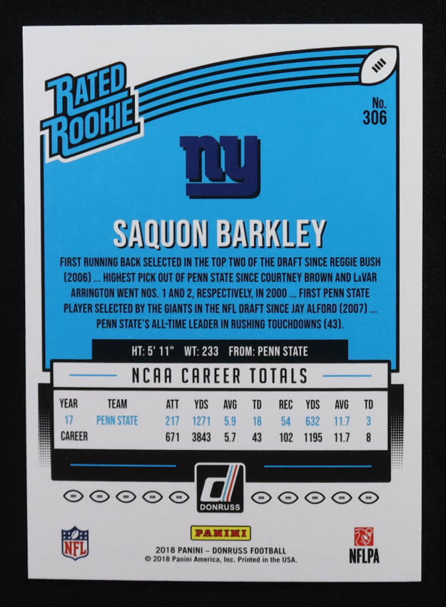 Saquon Barkley 2018 Donruss #306 RR RC