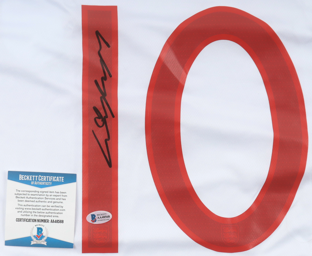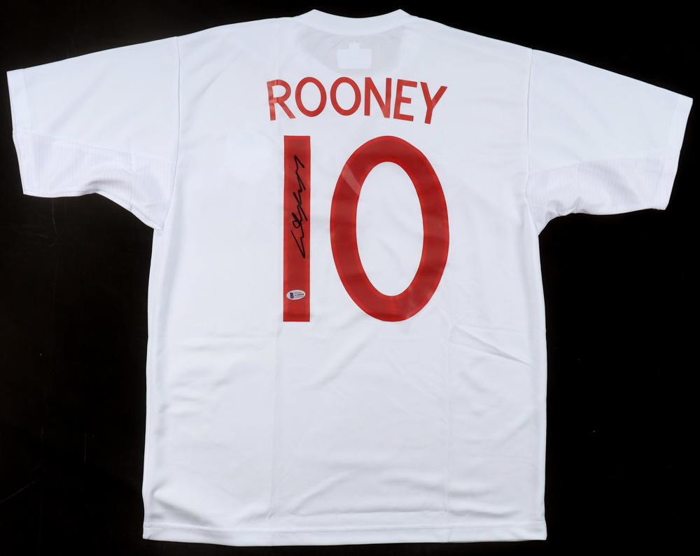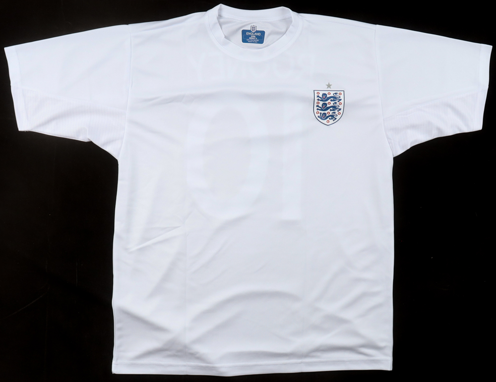 Custom jersey with everything pressed on, size L. Hand-signed by Wayne Rooney.