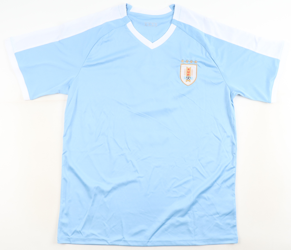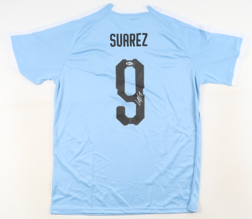 Custom jersey. Everything is printed/sewn on, size XL. Hand-signed by Luis Suarez. Please note, there are ink stains to the right of the reverse number.