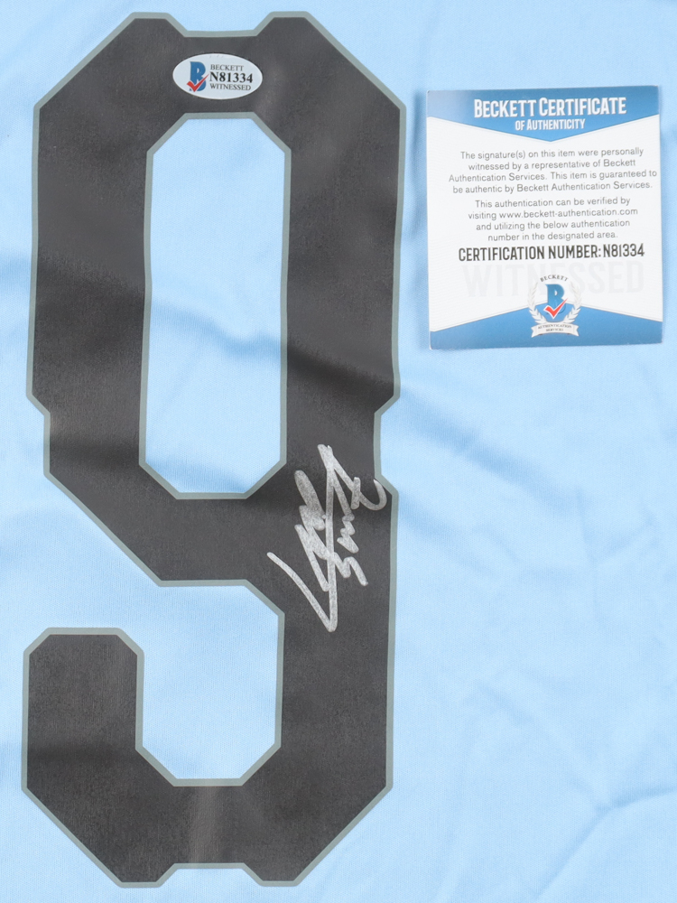 The autograph includes an official Beckett Authentication Services serially-numbered hologram and matching COA for authenticity purposes. The signing of this item was witnessed by Beckett.