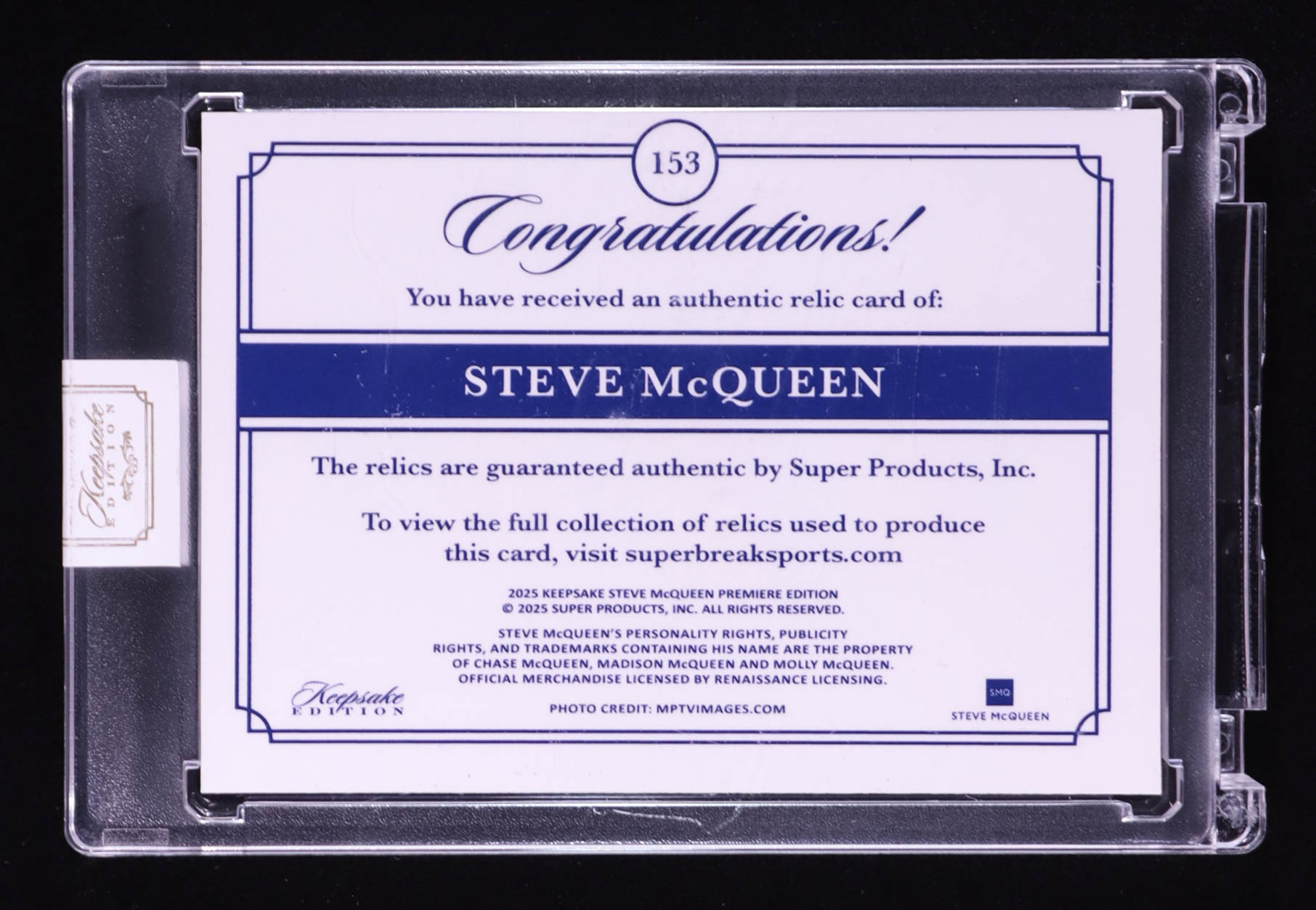 Steve McQueen 2025 Keepsake Edition Authentic Relics #153 #08/50