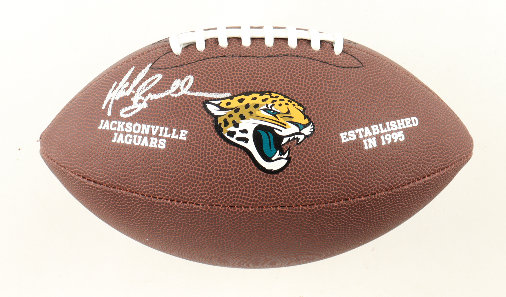 NFL Jacksonville Jaguars logo football. Hand-signed by Mark Brunell (Jacksonville Jaguars).