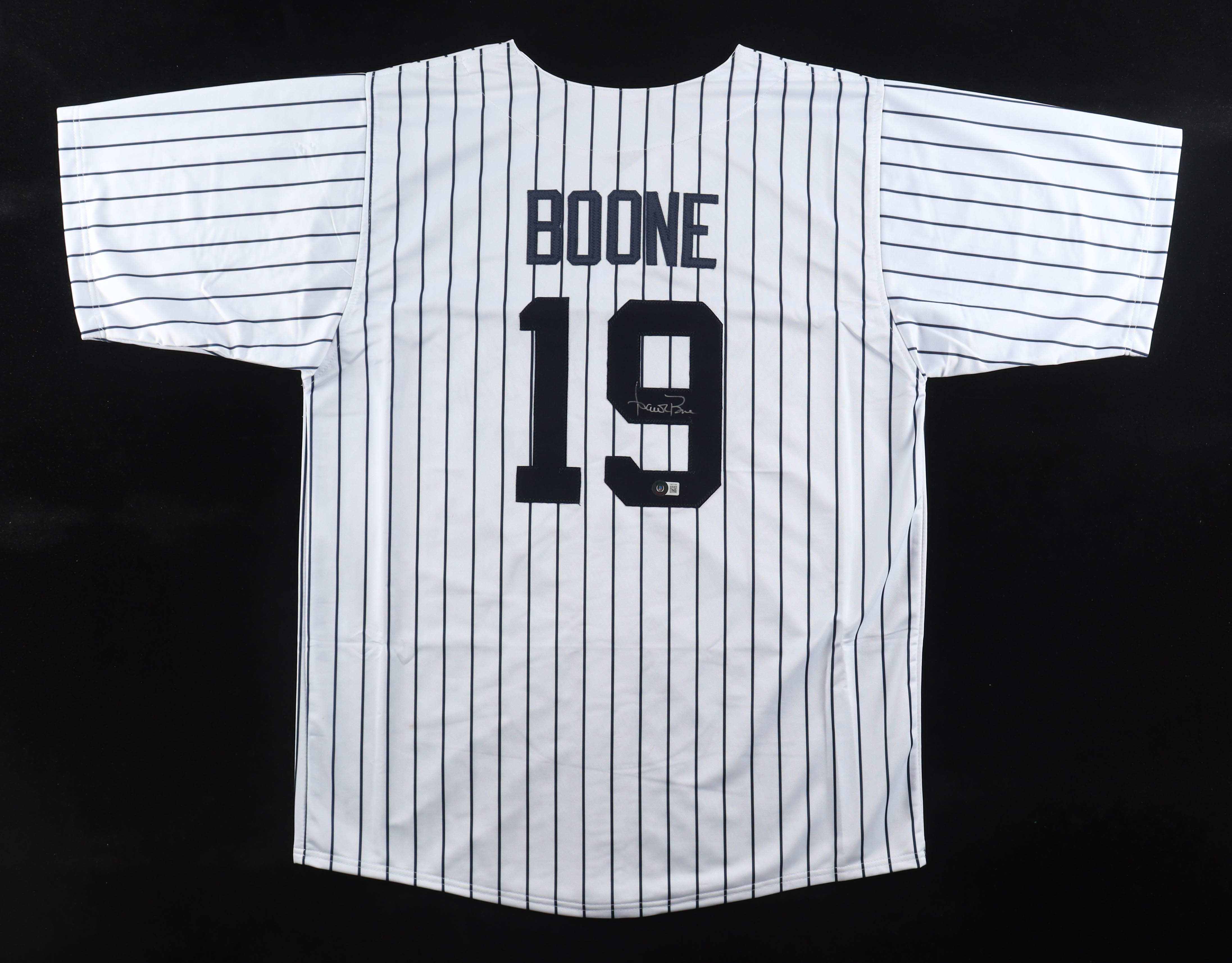 Custom jersey with everything sewn on, size XL. Hand-signed by Aaron Boone (New York Yankees).